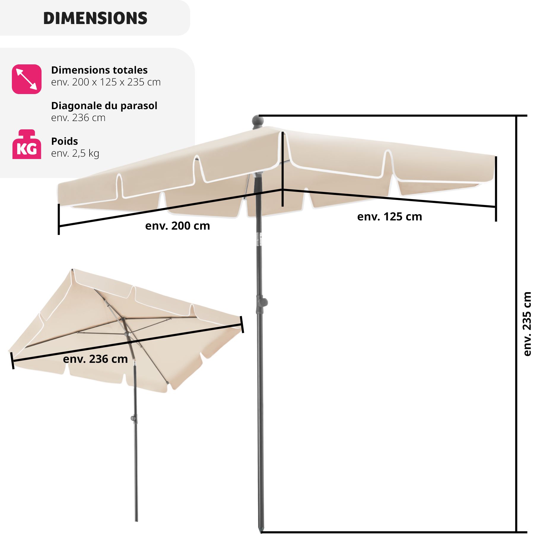 | Libellé | TECTAKE Parasol 200 x 125 cm Mécanisme facile à manipuler |
