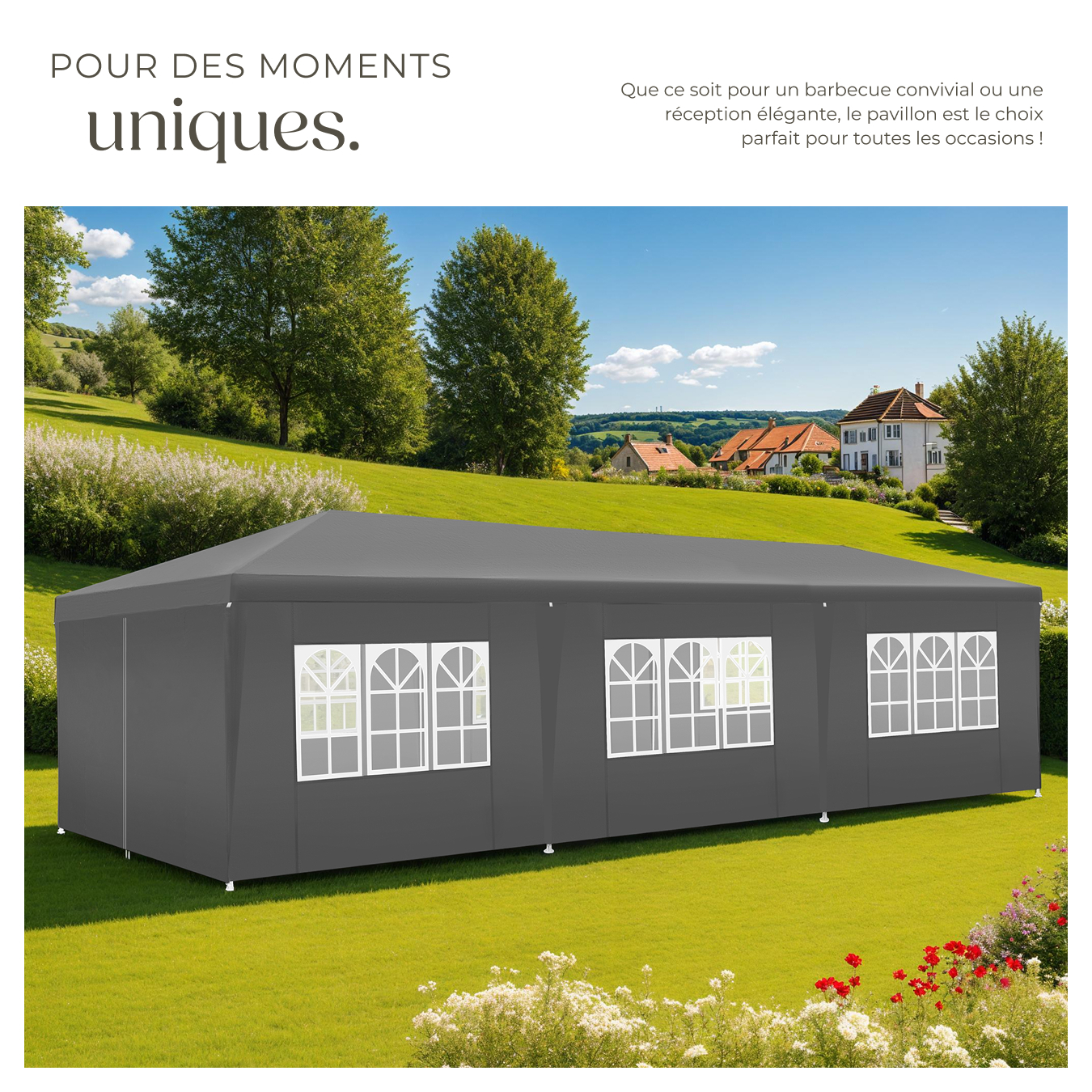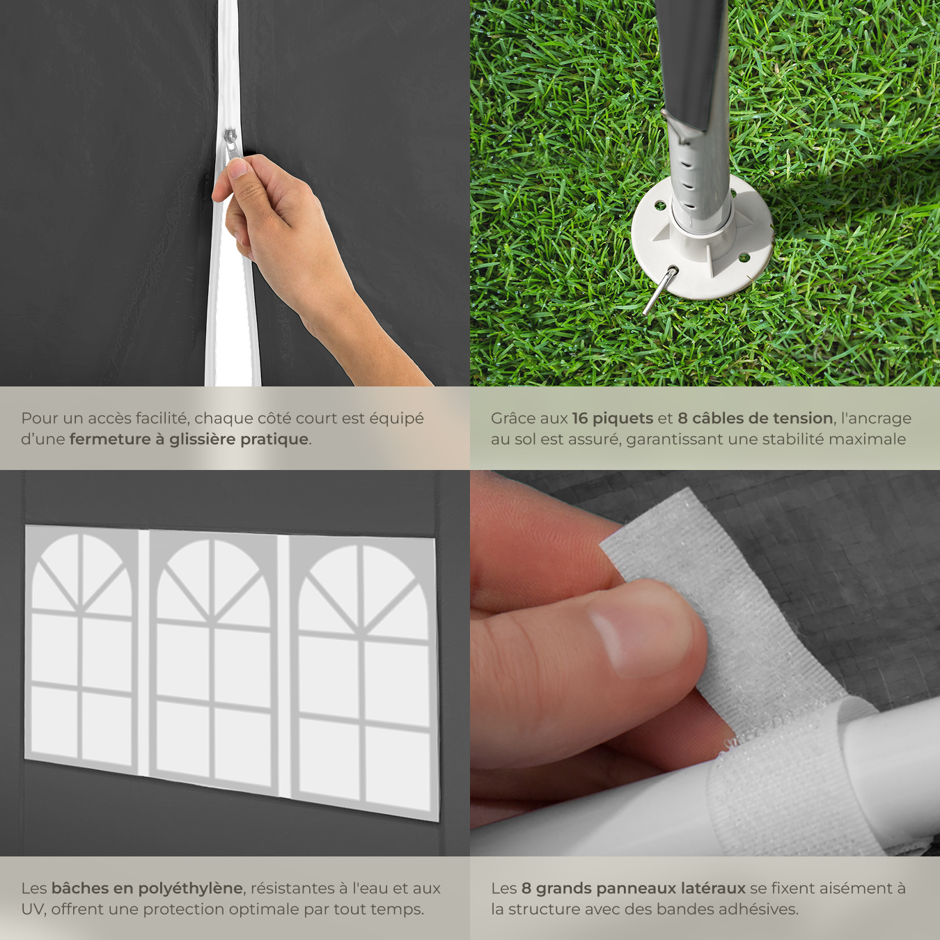 TECTAKE Pavillon 9 x 3 m en système emboîtable gris