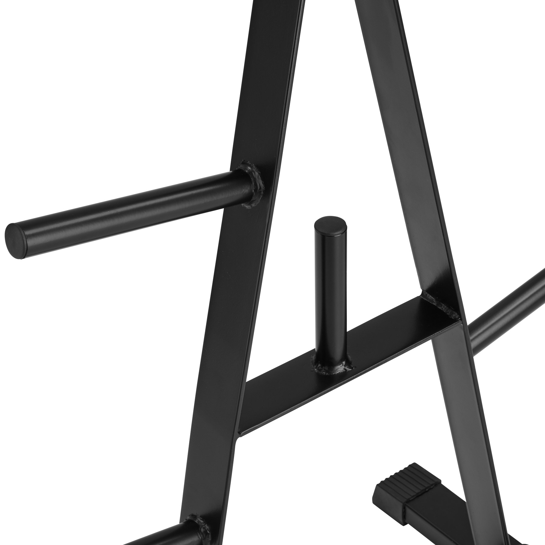 Rack de Rangement pour Poids, Range Disque d'Haltères, Support de Fitness, Musculation en Acier 67 cm x 38,5 cm x 91 cm Noir TECTAKE. Un accès rapide, un rangement précis et une grande capacité de charge : voilà tout ce que vous offre ce support à disques d'haltères. Les 5 branches sur l'extérieur et les 2 branches sur l'intérieur du cadre vous permettent de ranger toutes les dimensions usuelles de disques. Les deux pieds garantissent une grande capacité de charge et une bonne stabilité et les embouts en plastique protègent le sol. Ce rack de rangement pour poids possède une construction robuste. Trouvez facilement le disque avec lequel vous voulez vous entraîner grâce à ce range disques d'haltère bien ordonné.