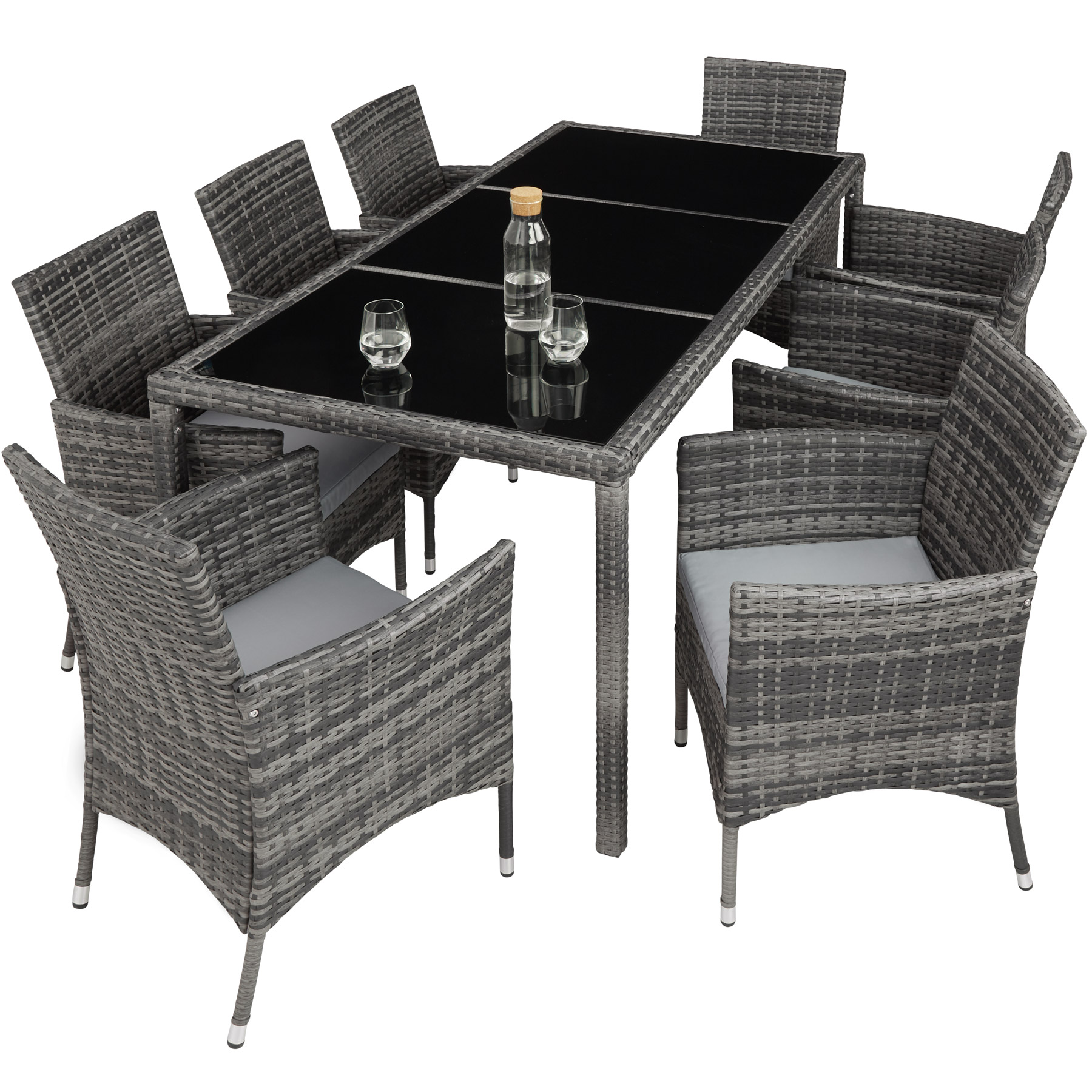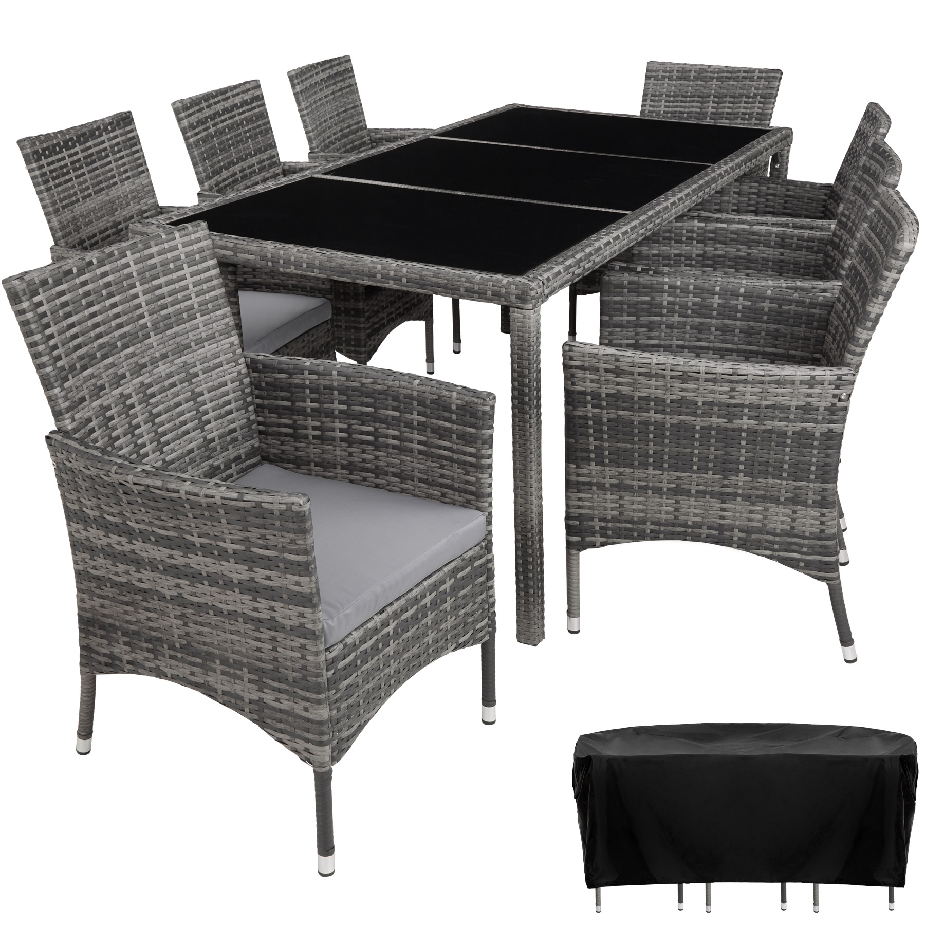 Tectake Salon de jardin 8 places avec housse de protection - gris