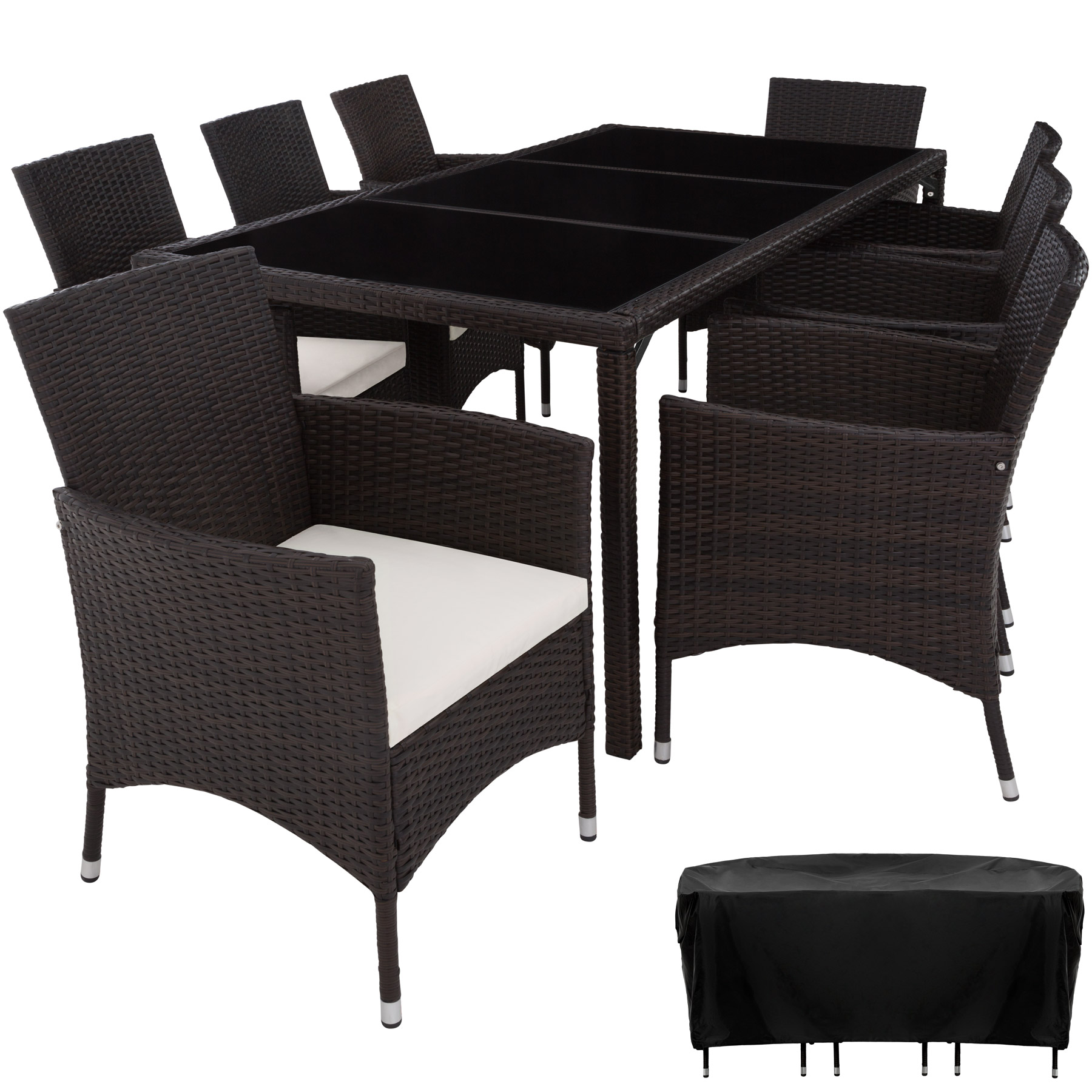 Tectake Salon de jardin 8 places avec housse de protection - marron marbré