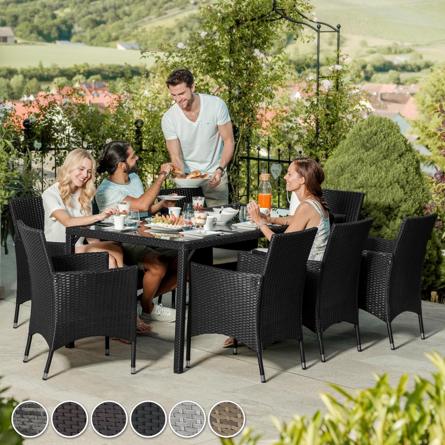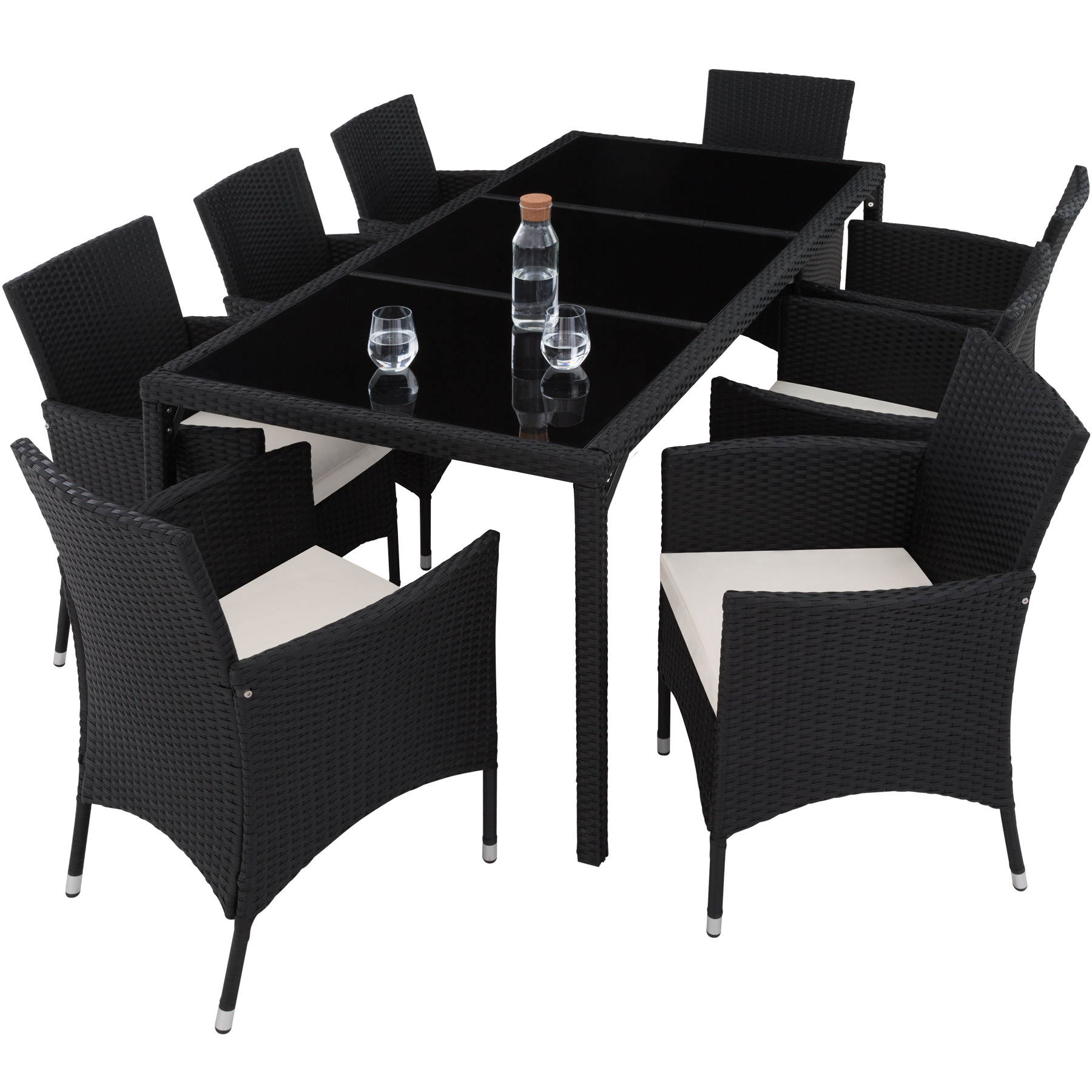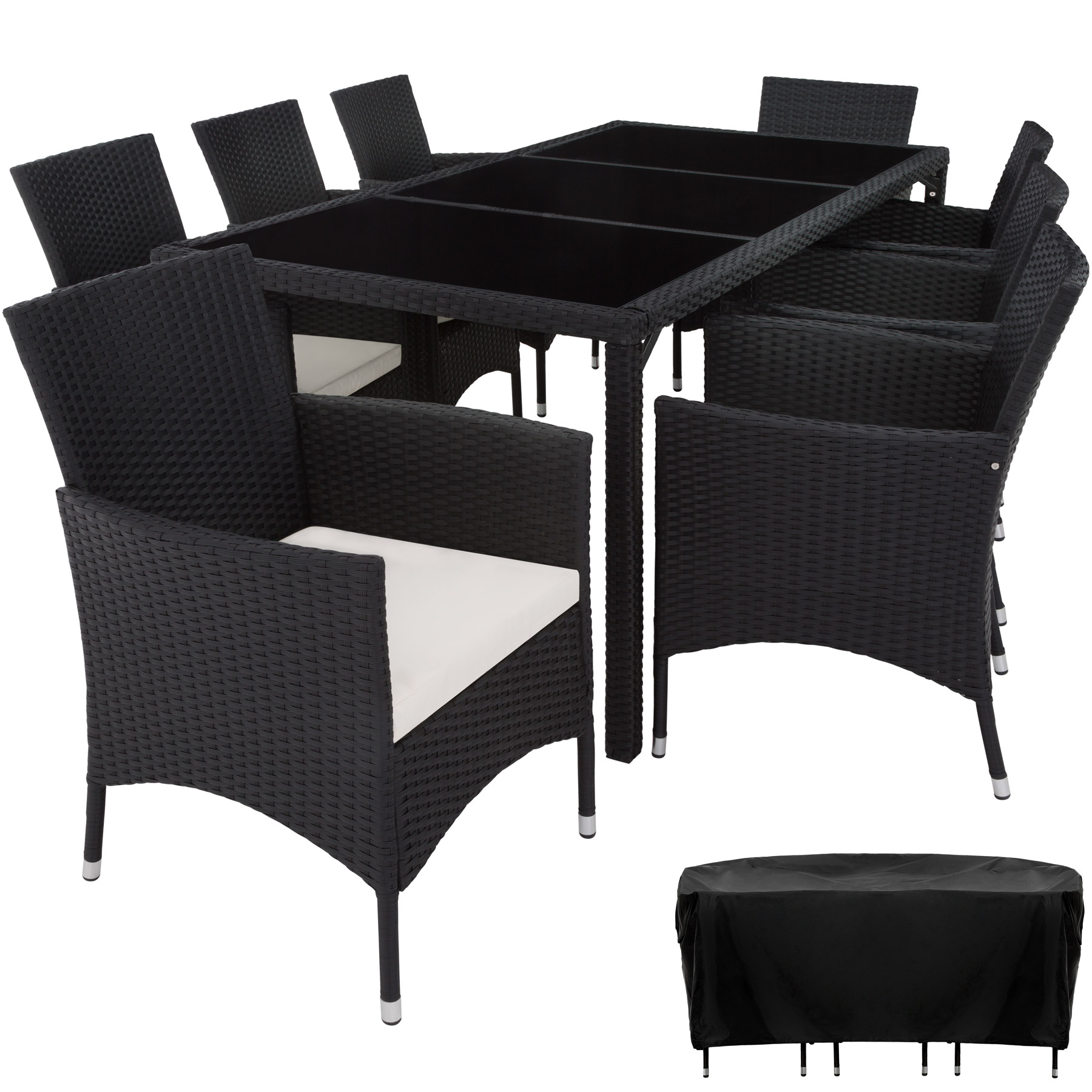 Tectake Salon de jardin 8 places avec housse de protection - noir