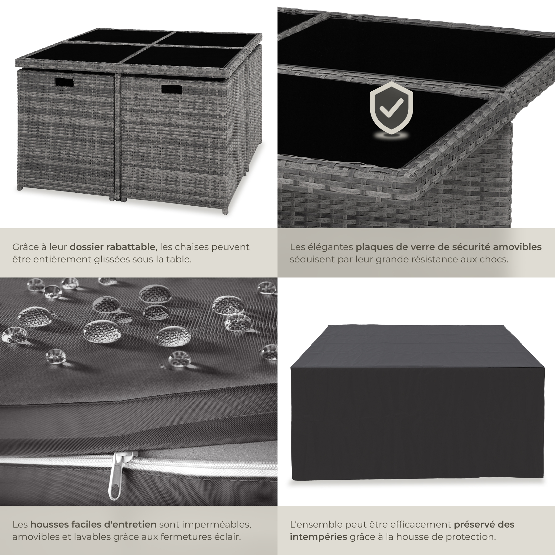 - 1 housse de protection recouvrant l'ensemble du salon de jardin
