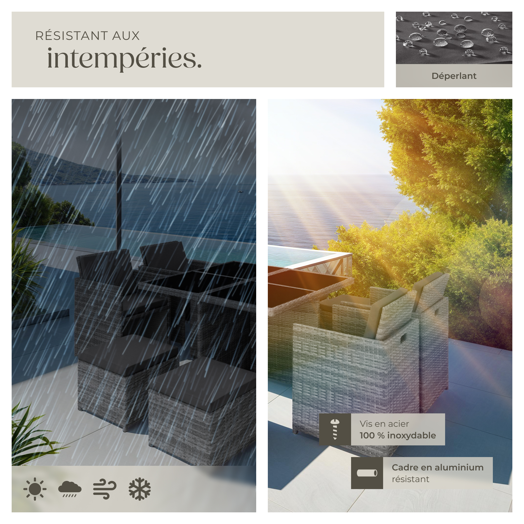 Mobilier extérieur - Salon MANHATTAN avec Accessoires Inclus