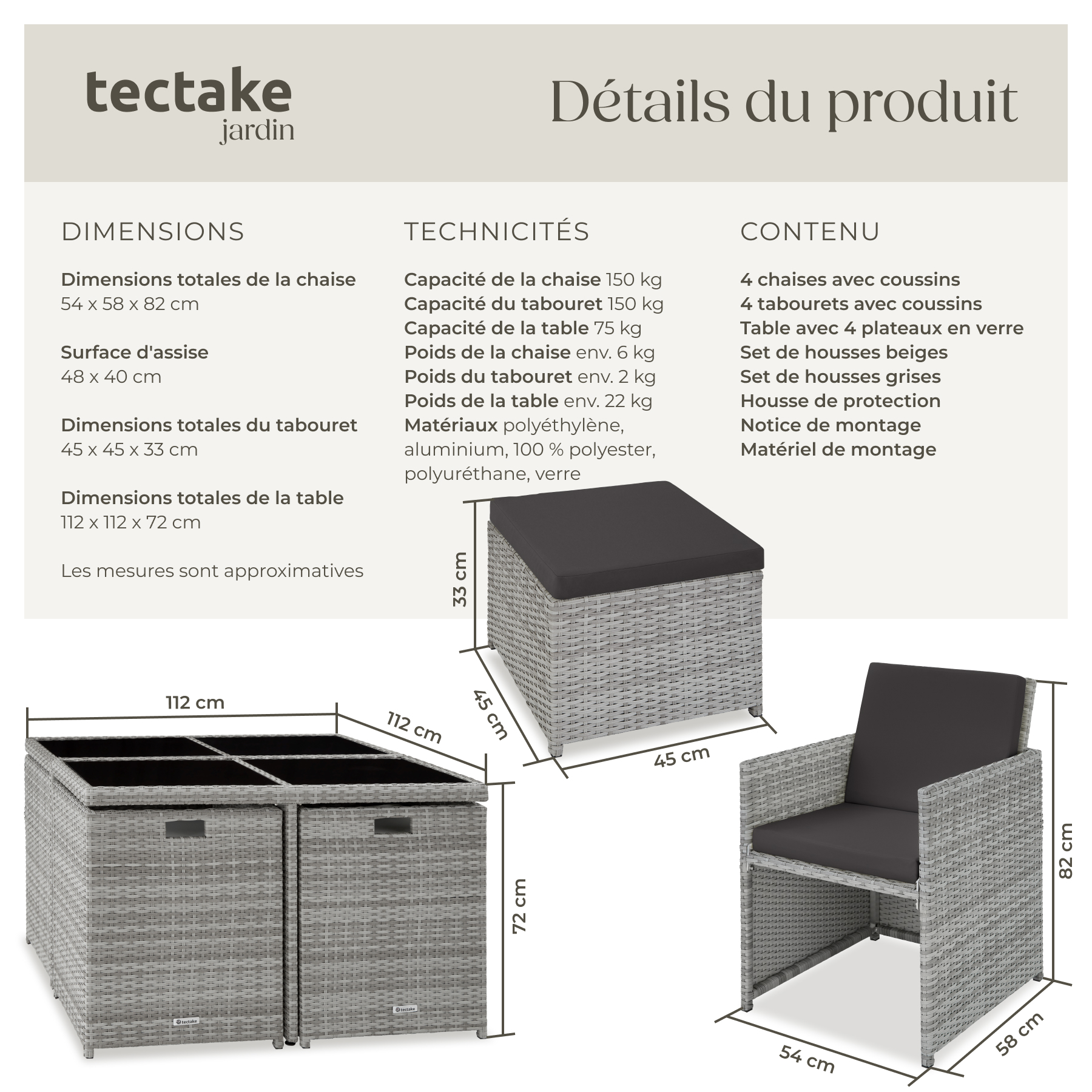 | Libellé | TECTAKE Salon de jardin avec cadre en aluminium gris clair |