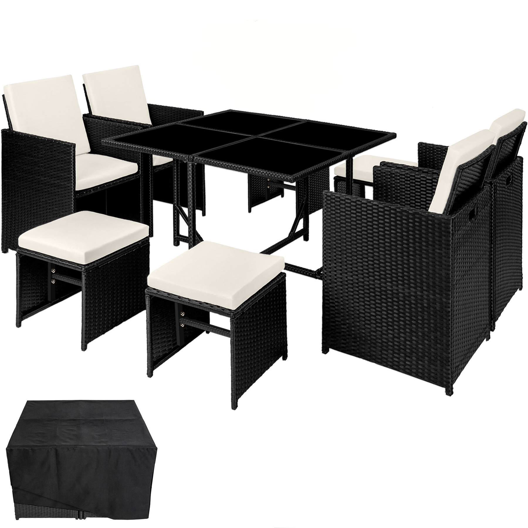 Tectake Salon de jardin BILBAO 8 places avec housse de protection - noir