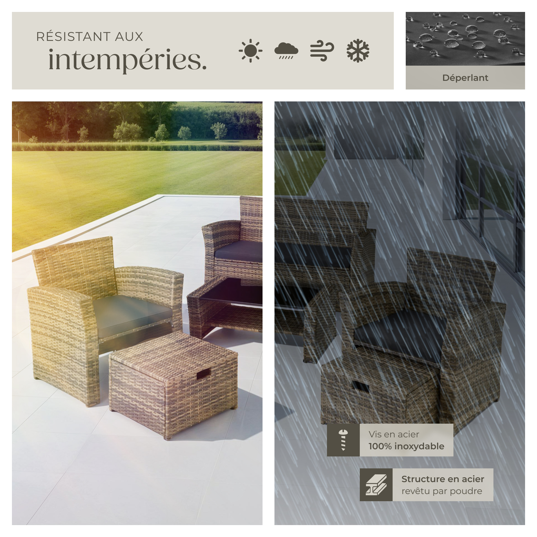 Meuble rotin - Salon de jardin robuste et facile à entretenir