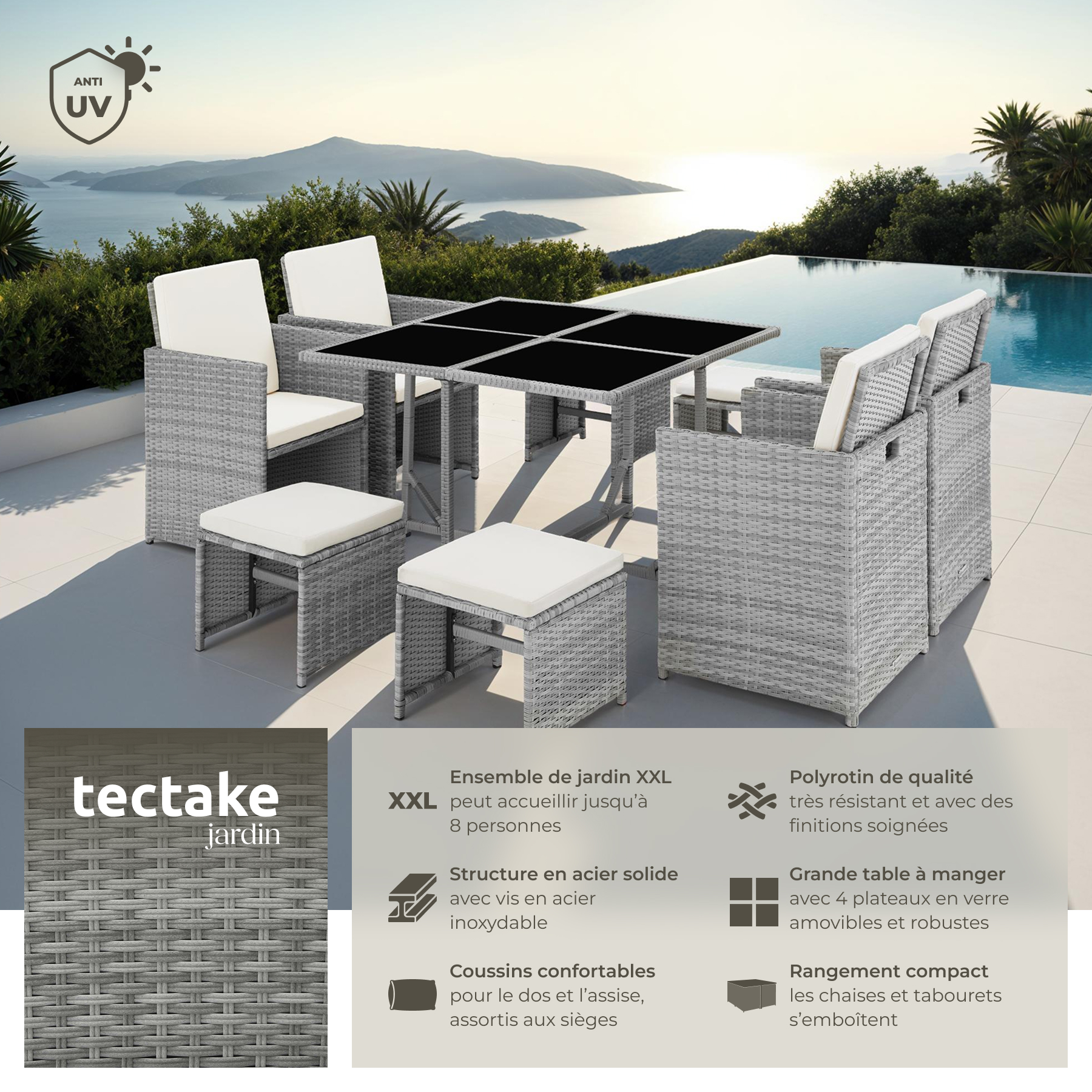 TECTAKE Salon de jardin Pour 4 à 8 personnes