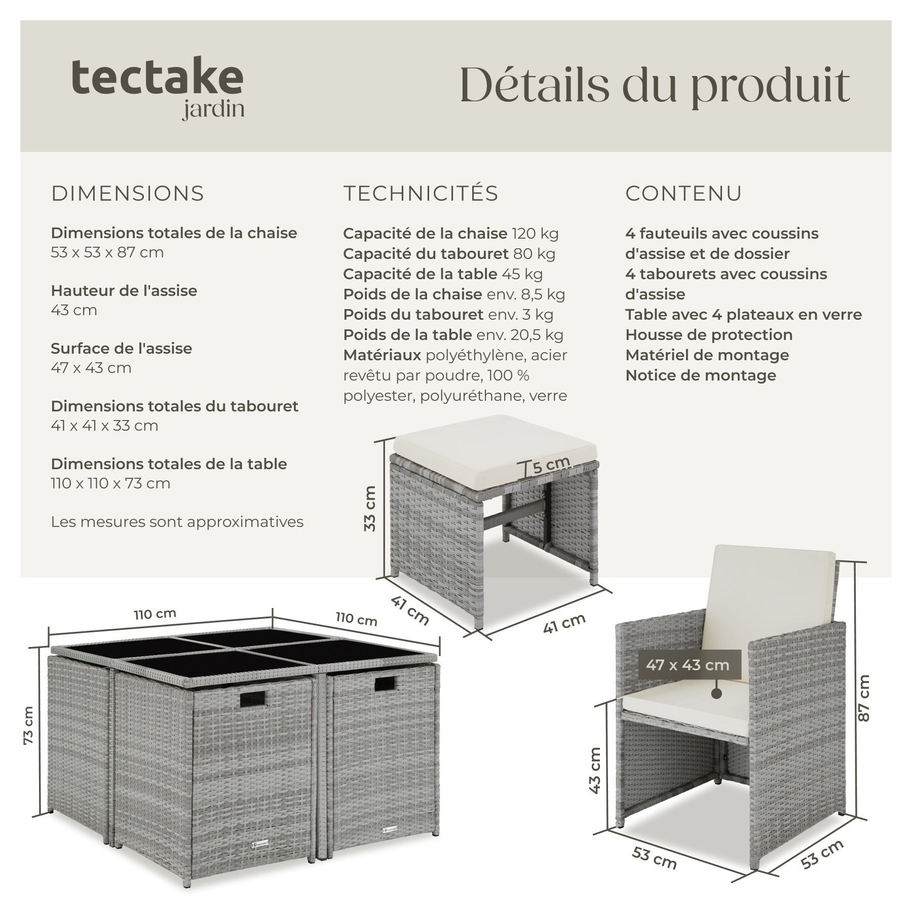 | Libellé | TECTAKE Salon de jardin Pour 4 à 8 personnes |