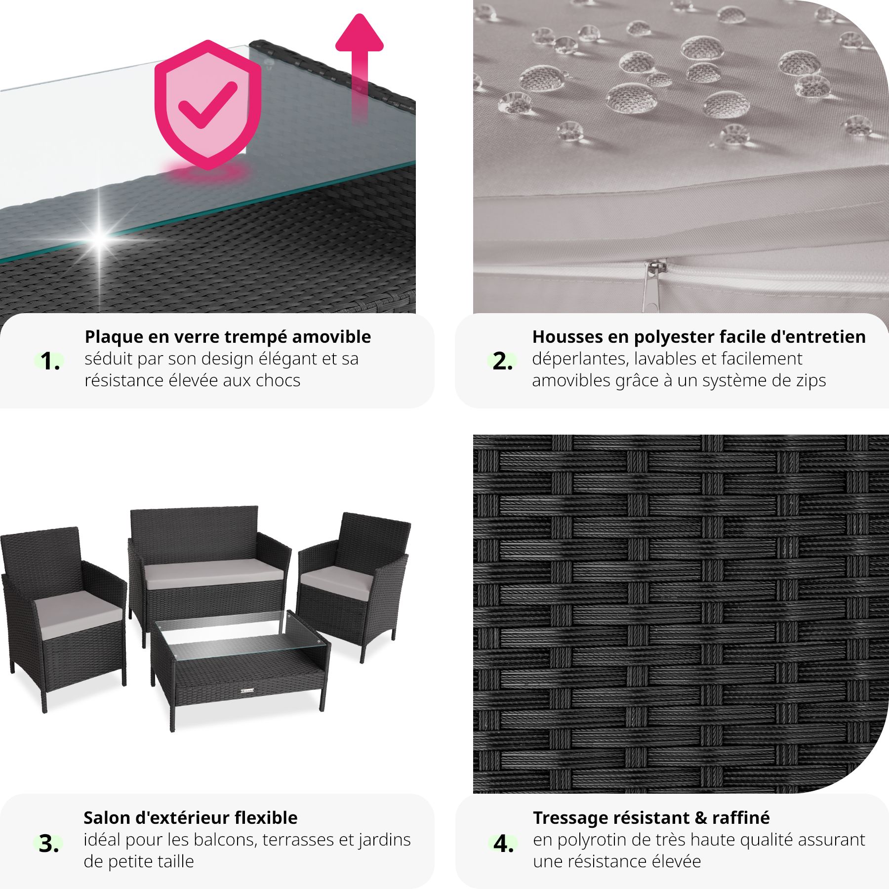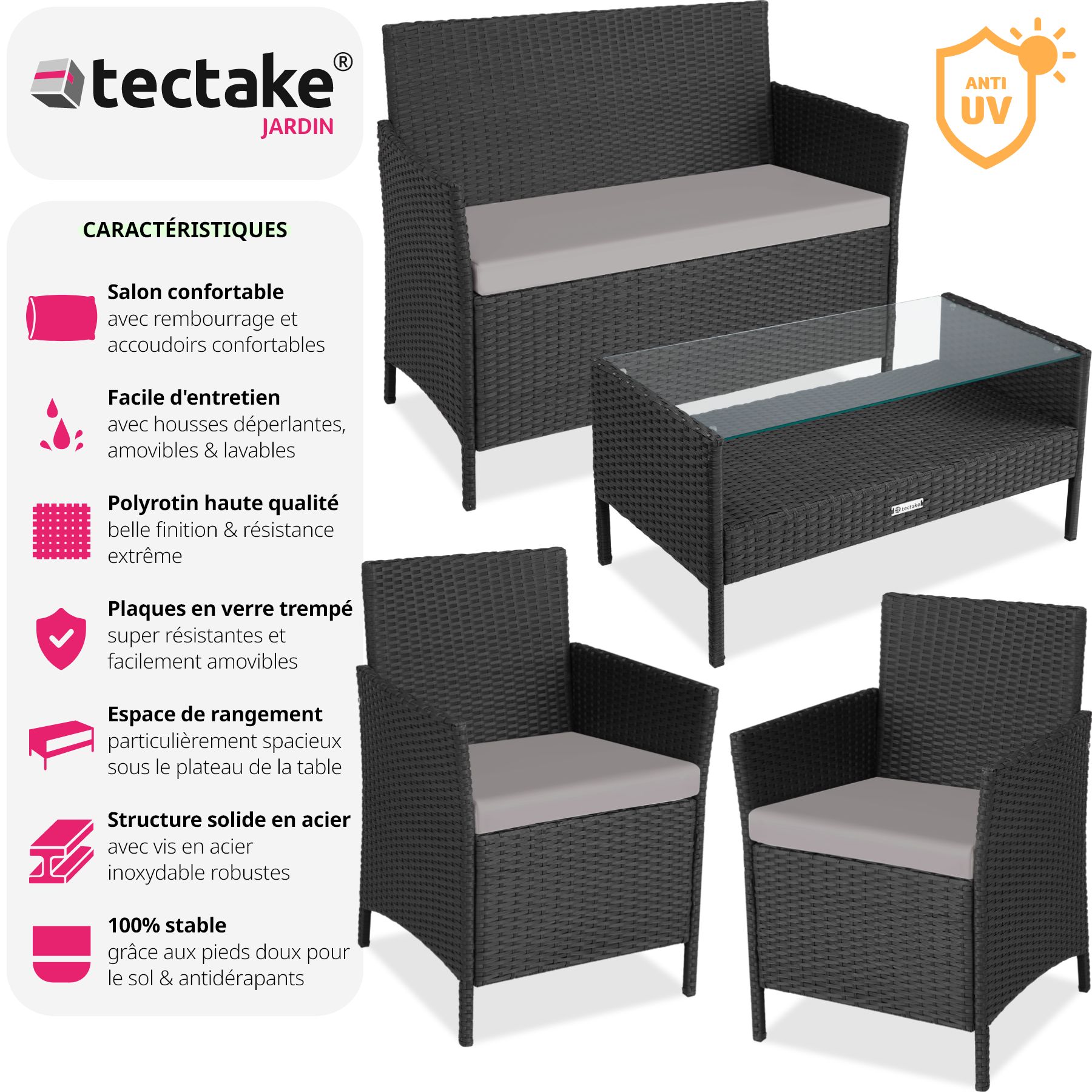 | Libellé | TECTAKE Salon de jardin Pour 4 personnes noir/gris |