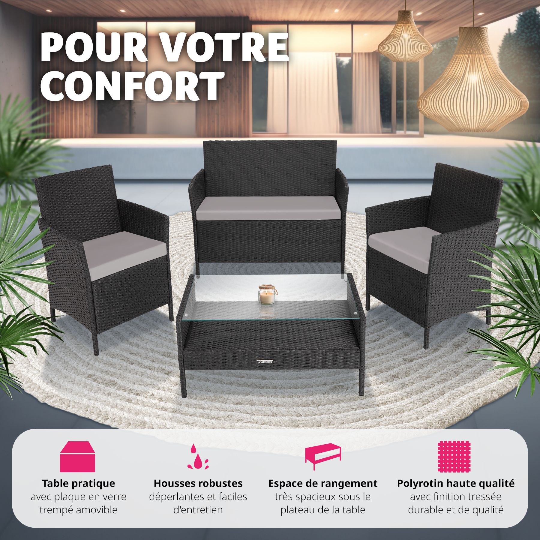 TECTAKE Salon de jardin Pour 4 personnes noir/gris