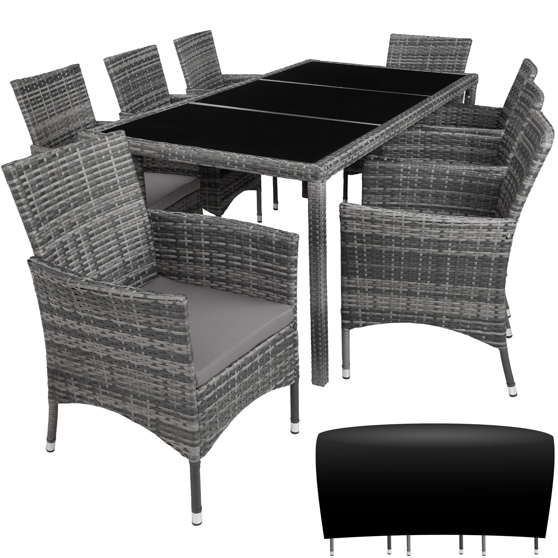 TECTAKE Salon de jardin pour 8 personnes gris tacheté/gris