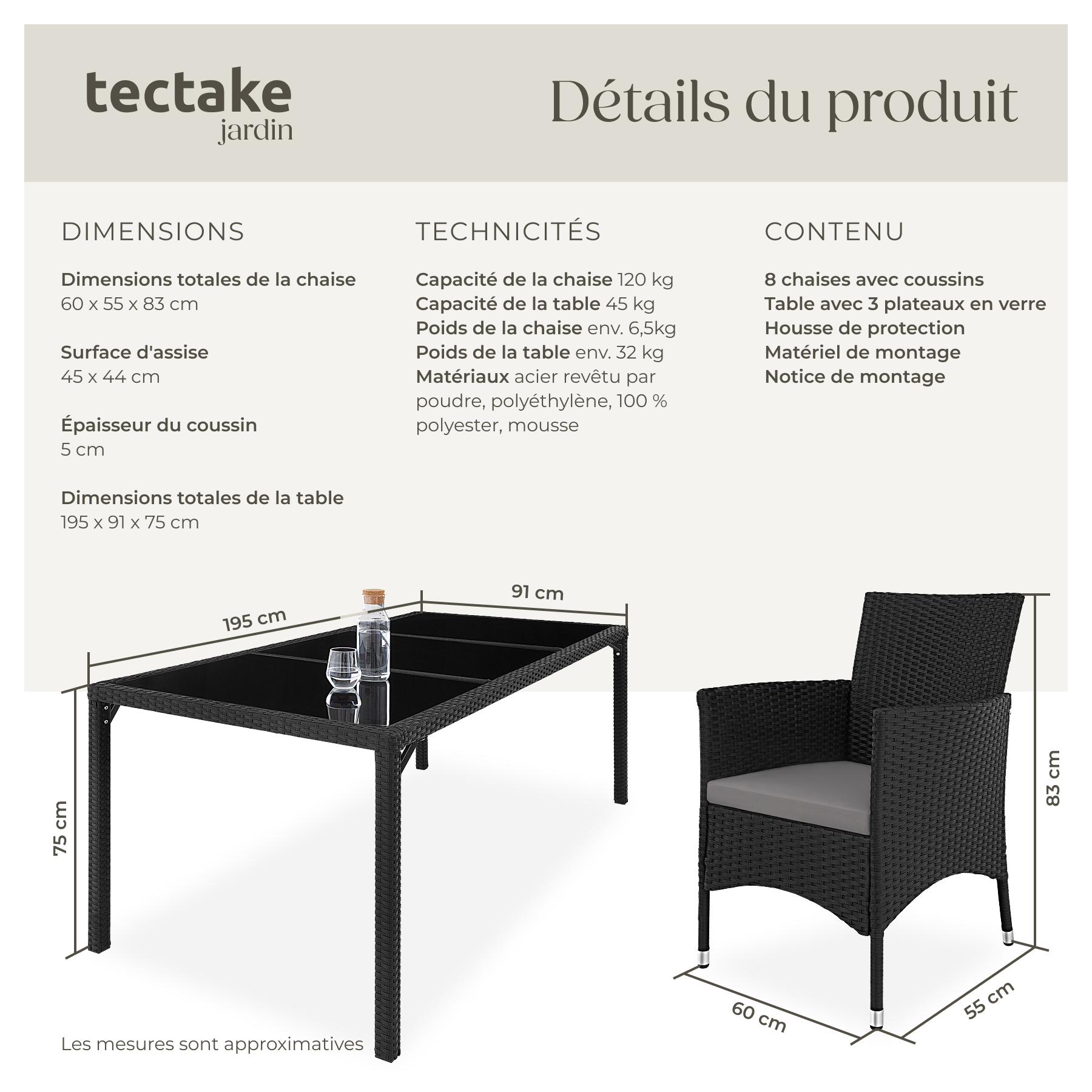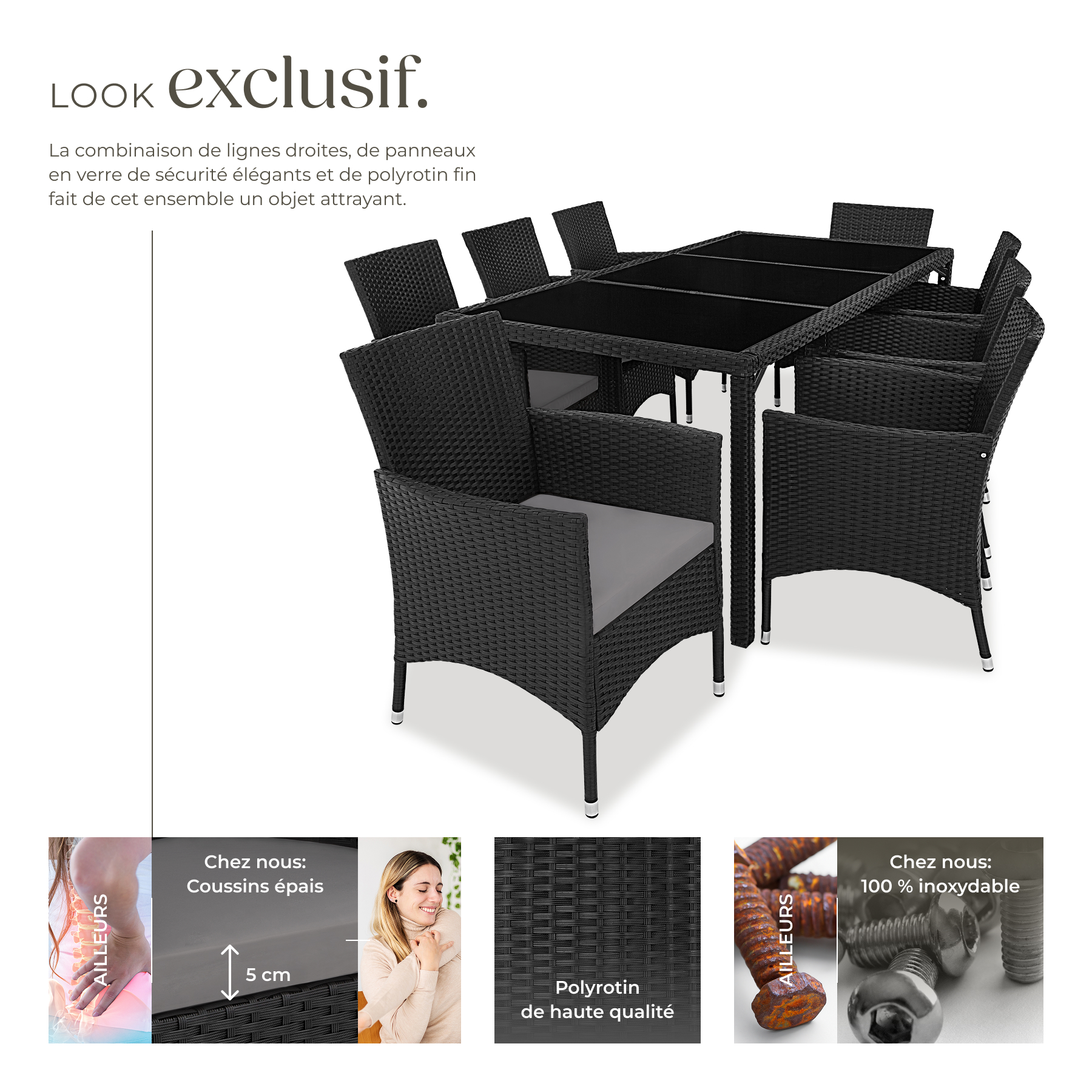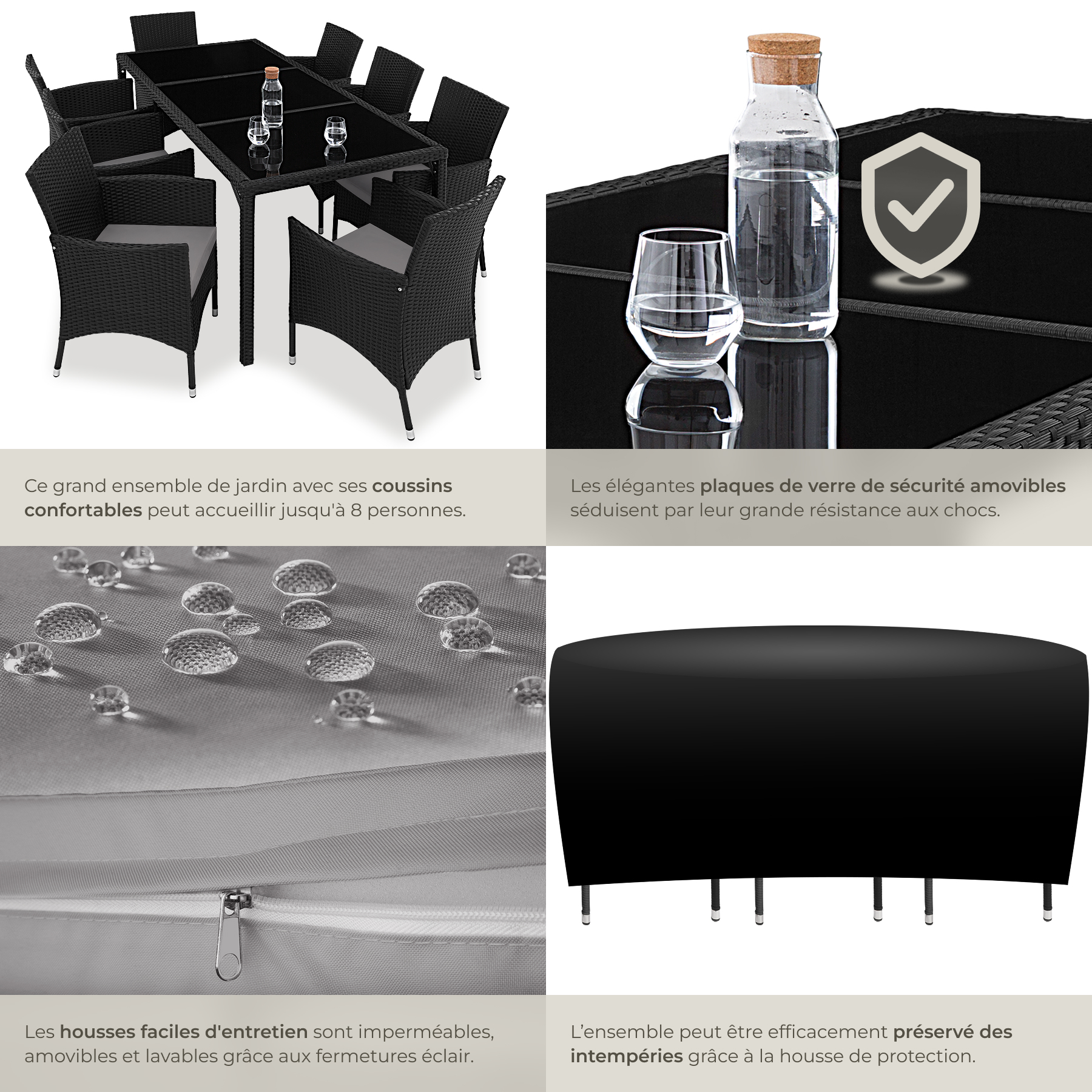 | Libellé | TECTAKE Salon de jardin pour 8 personnes noir/gris |