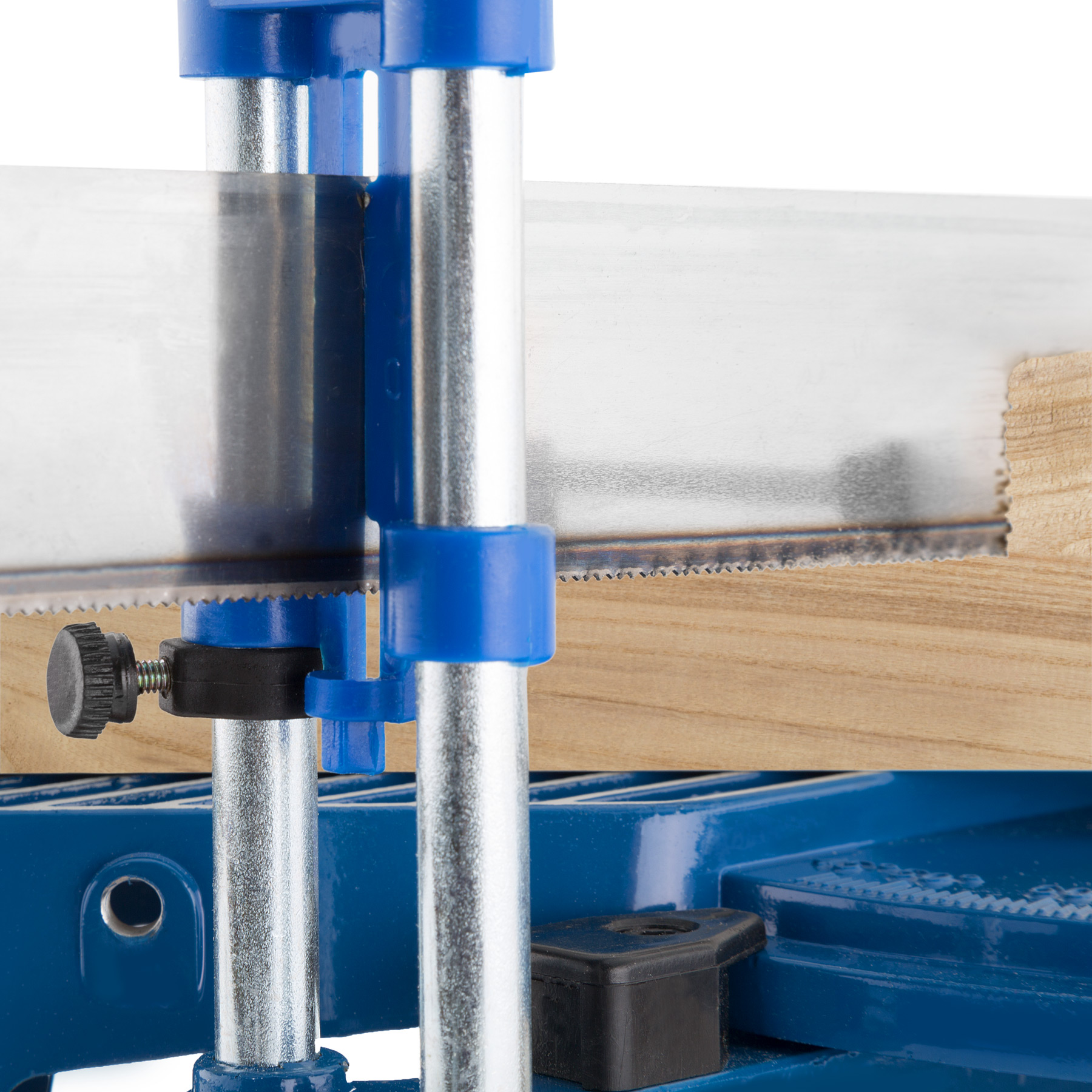 Scie à Onglets Manuelle Lame 550 mm en Aluminium TECTAKE. Vous voulez découper des pièces de même longueur et obtenir une coupe droite ? La scie à onglet manuelle est idéale pour les découpes rapides et précises. La vis de blocage tient la pièce à couper bien en place. La butée latérale permet de fabriquer des pièces de même longueur, idéal pour la confection de cadres par exemple. Les angles de coupe les plus fréquents sont préréglés pour accélérer leur sélection. Les pieds en caoutchouc antidérapants empêchent l'appareil de bouger de la table pendant le sciage. Trouvez toujours le bon angle avec notre scie à onglets !
