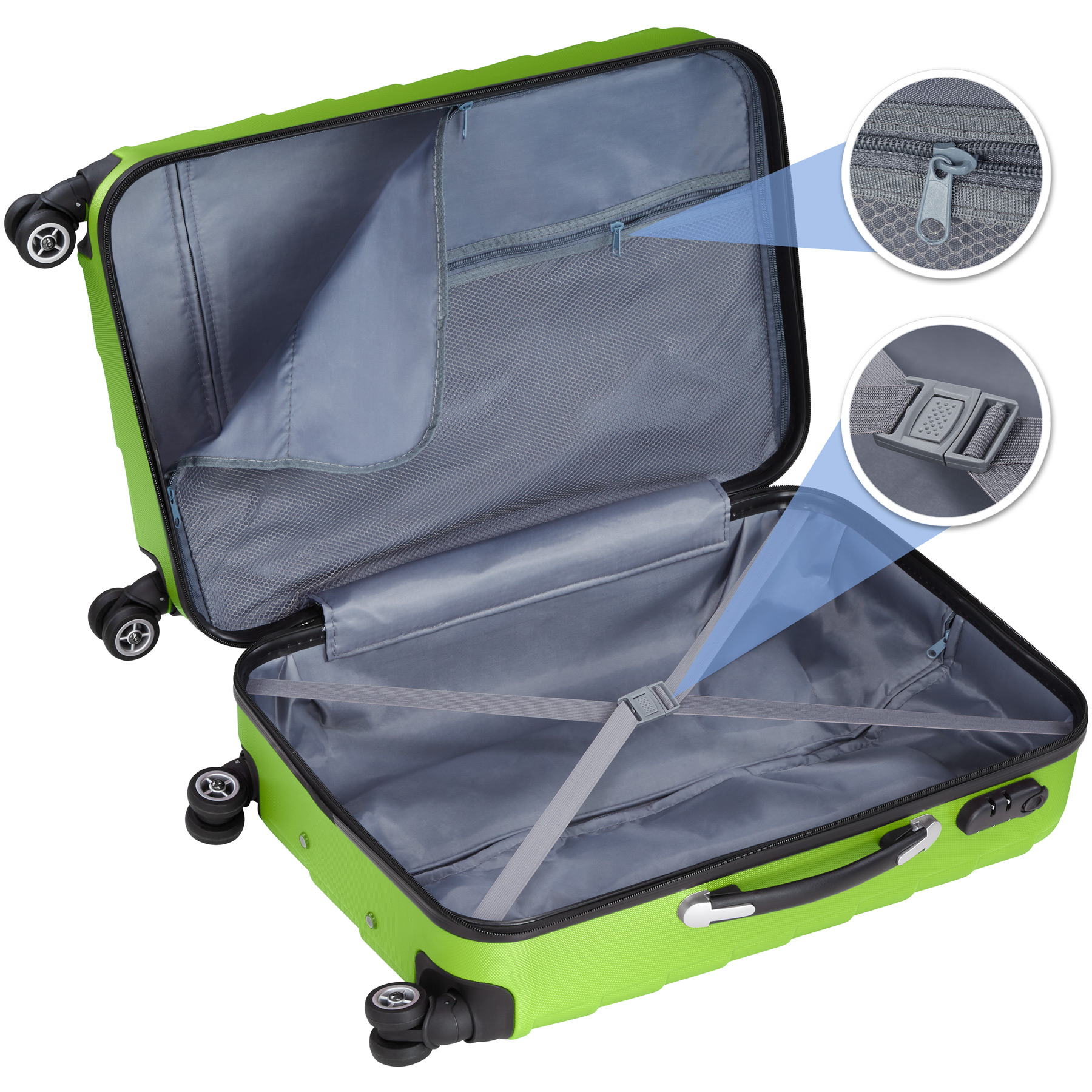 | Libellé | Tectake Set de 3 Valises Trolley Rigides - vert |