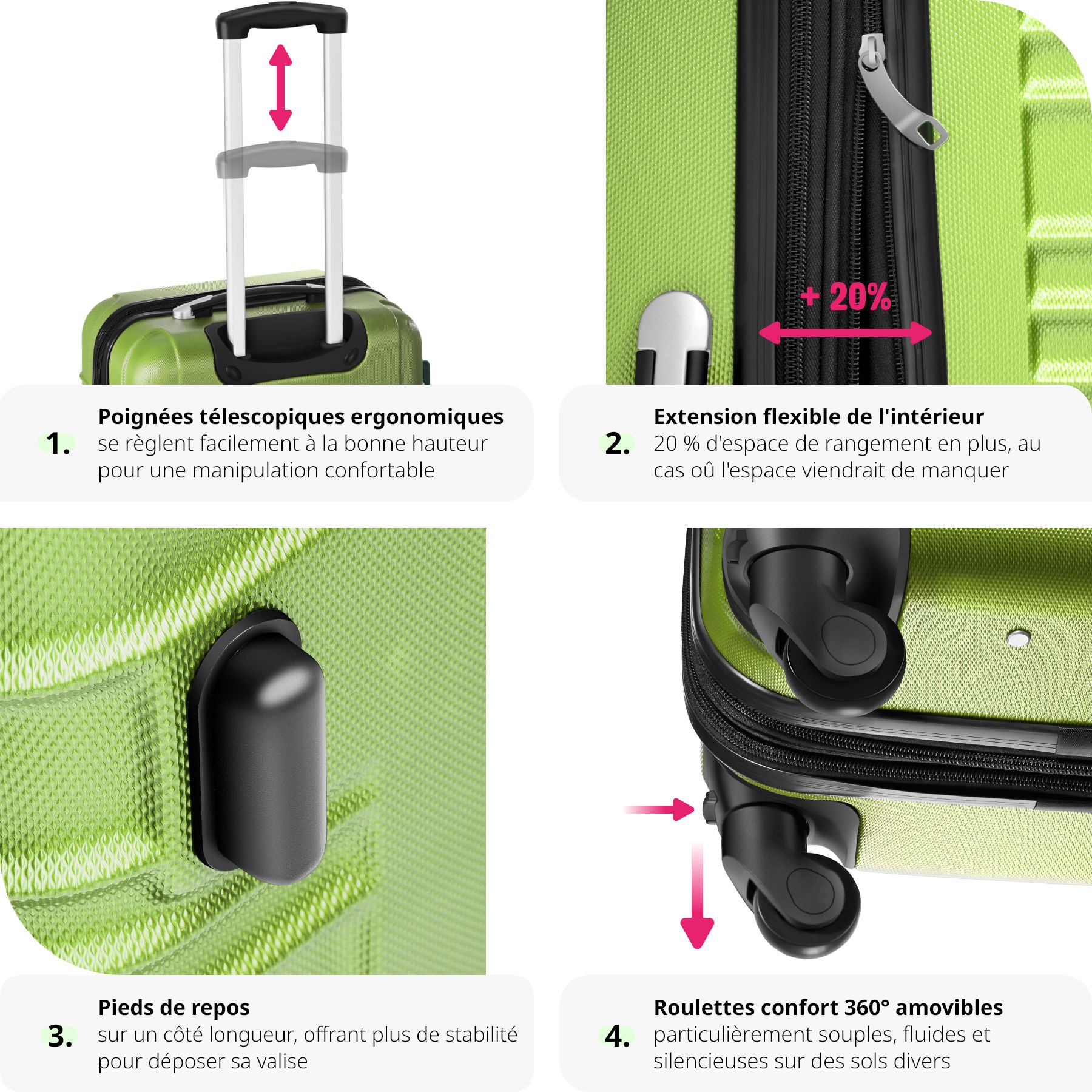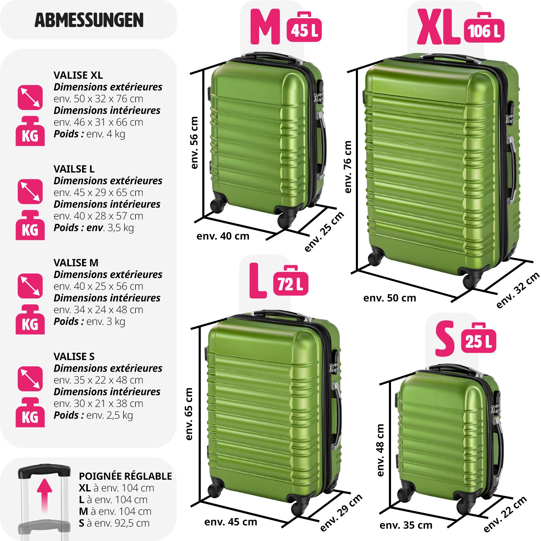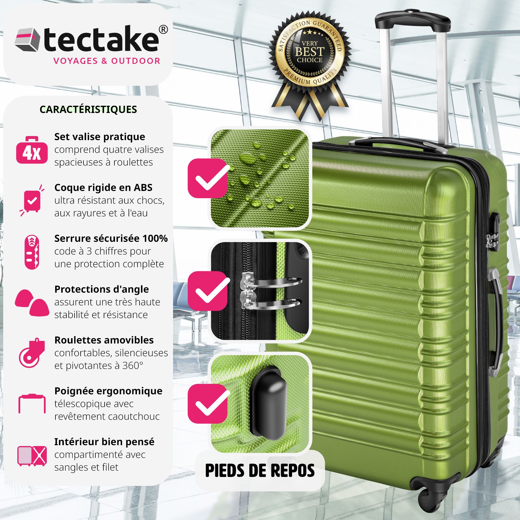 | Libellé | Tectake Set de 4 Valises Trolley - ABS - 4 Roues Pivotantes à 360° - vert |