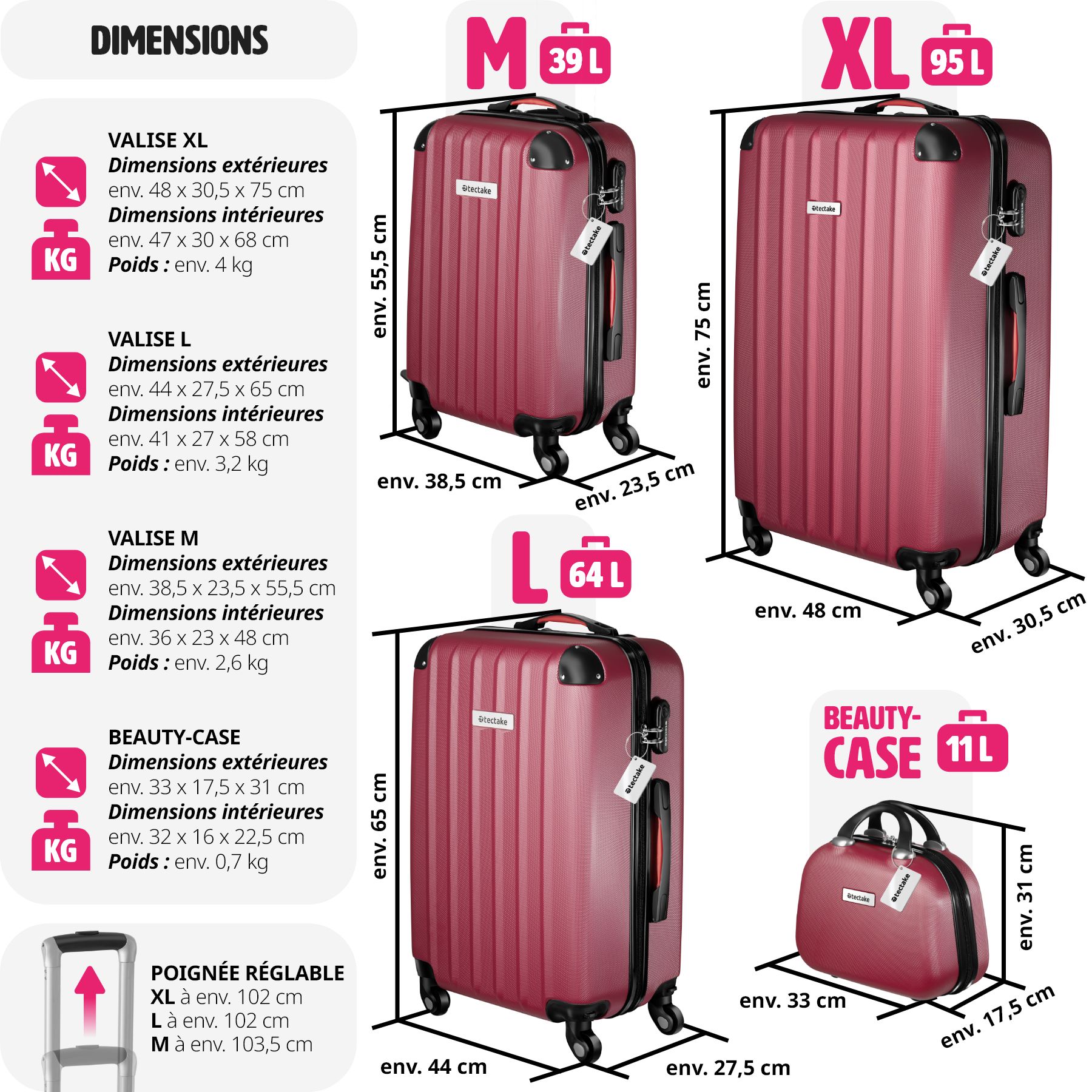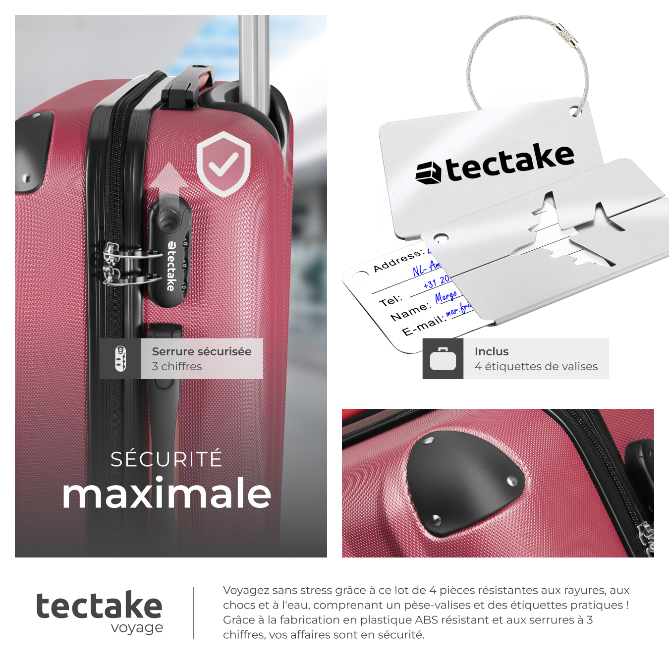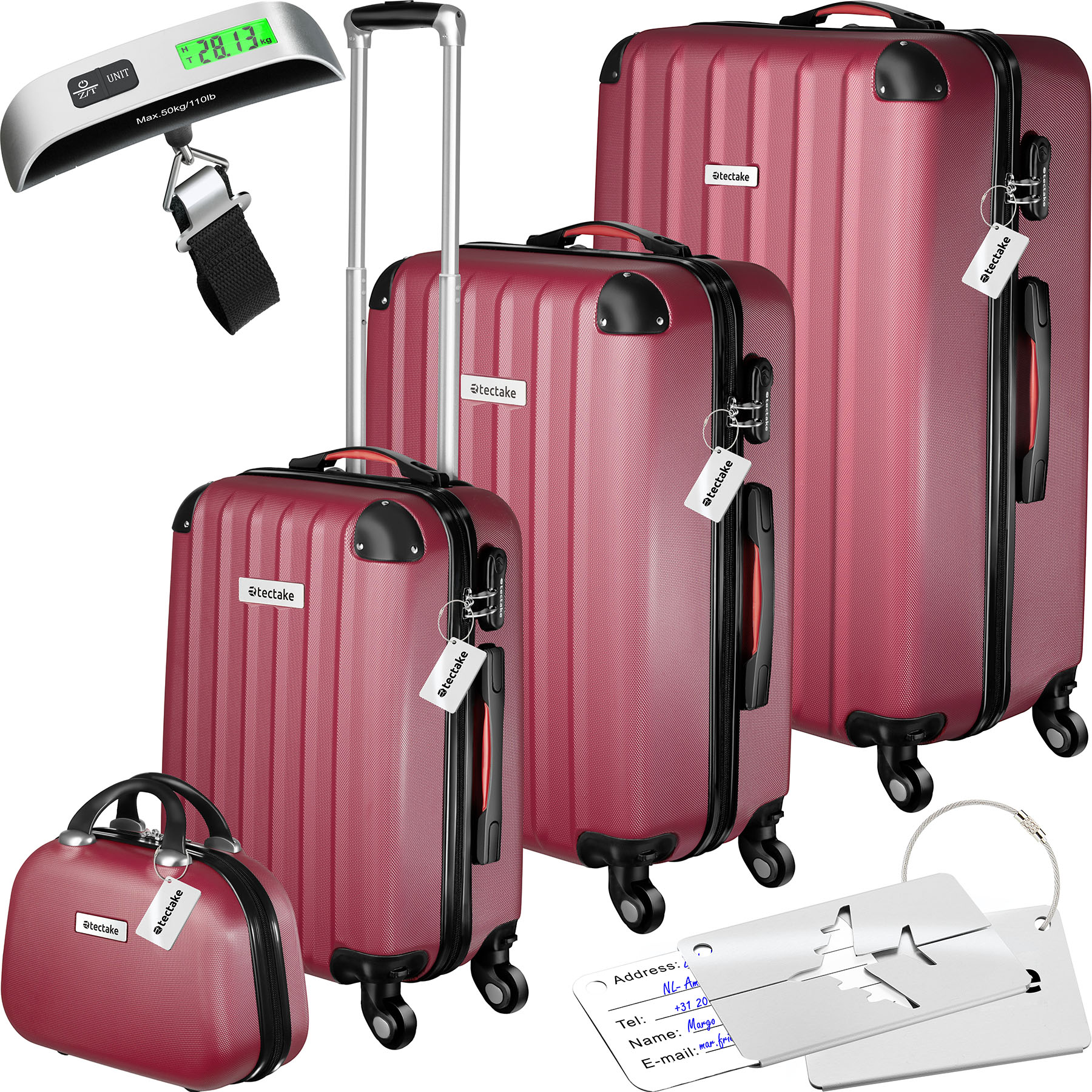 | Libellé | TECTAKE Set de valises rigides 4 pièces, 3 Trolleys, 1 Vanity case, Balance et étiquette bagages inclus rouge bordeaux |