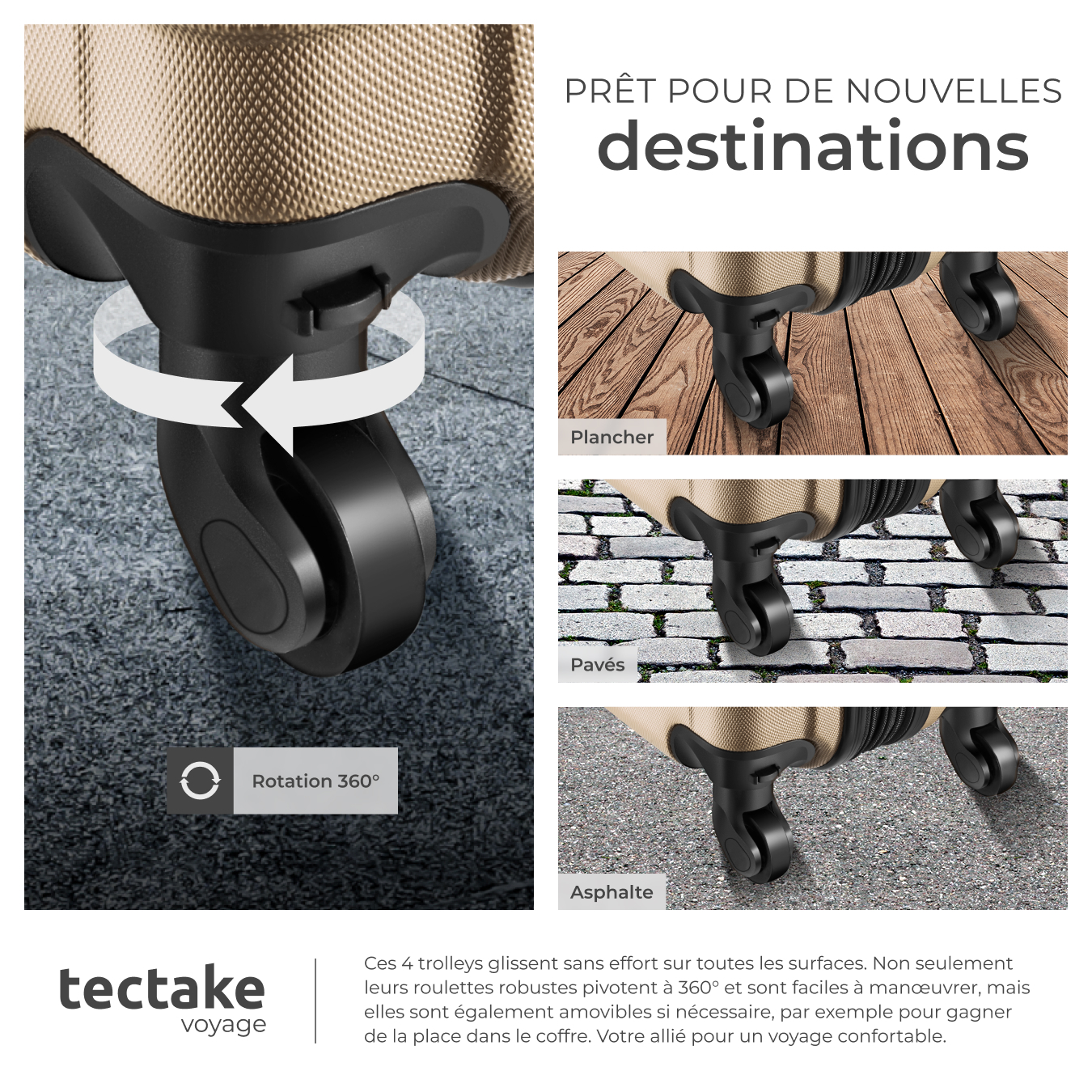 | Libellé | TECTAKE Set de valises rigides 4 pièces en plastique ABS robuste, pèse-bagages et une étiquette de valise incluses champagne |