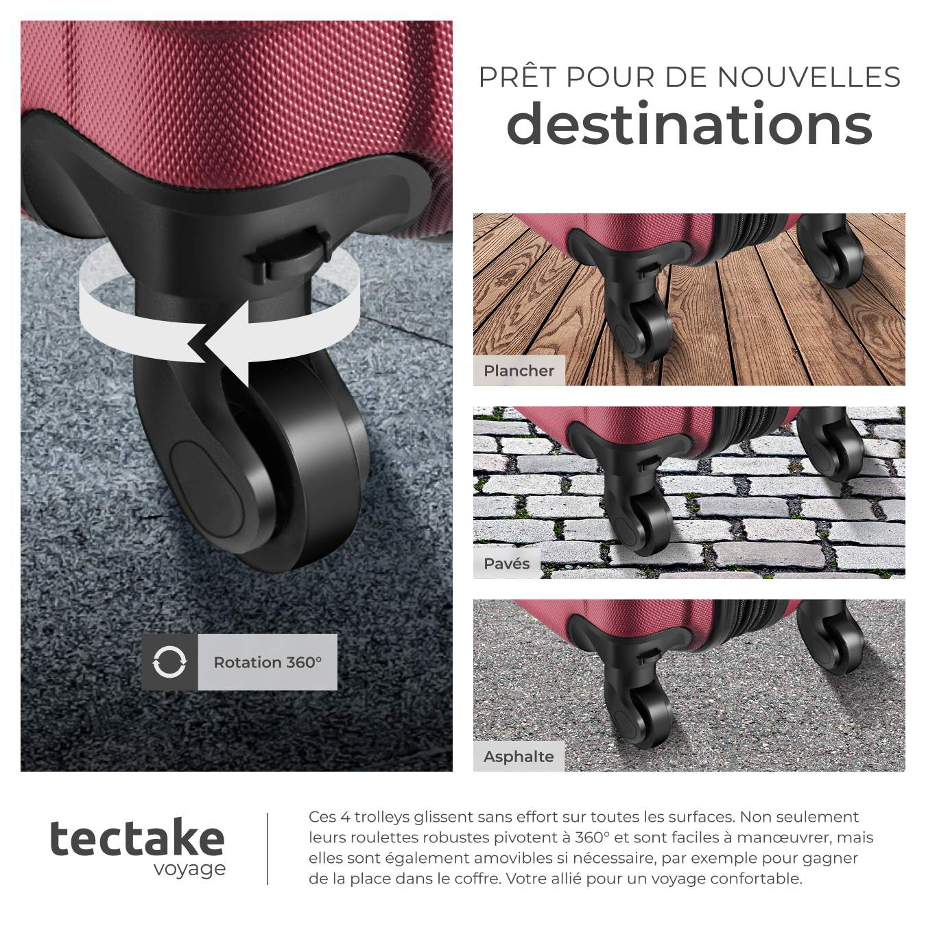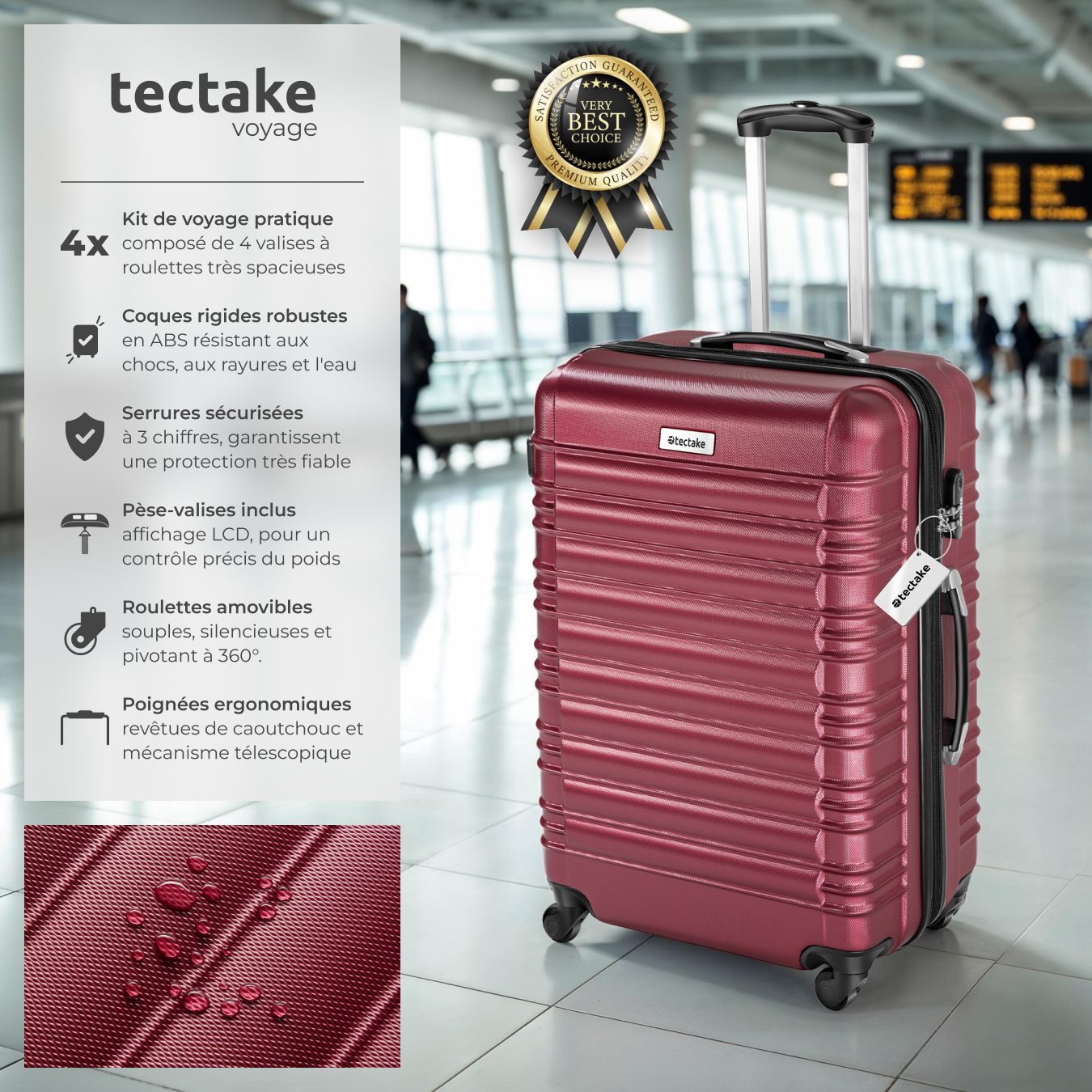 | Libellé | TECTAKE Set de valises rigides 4 pièces en plastique ABS robuste, pèse-bagages et une étiquette de valise incluses rouge bordeaux |