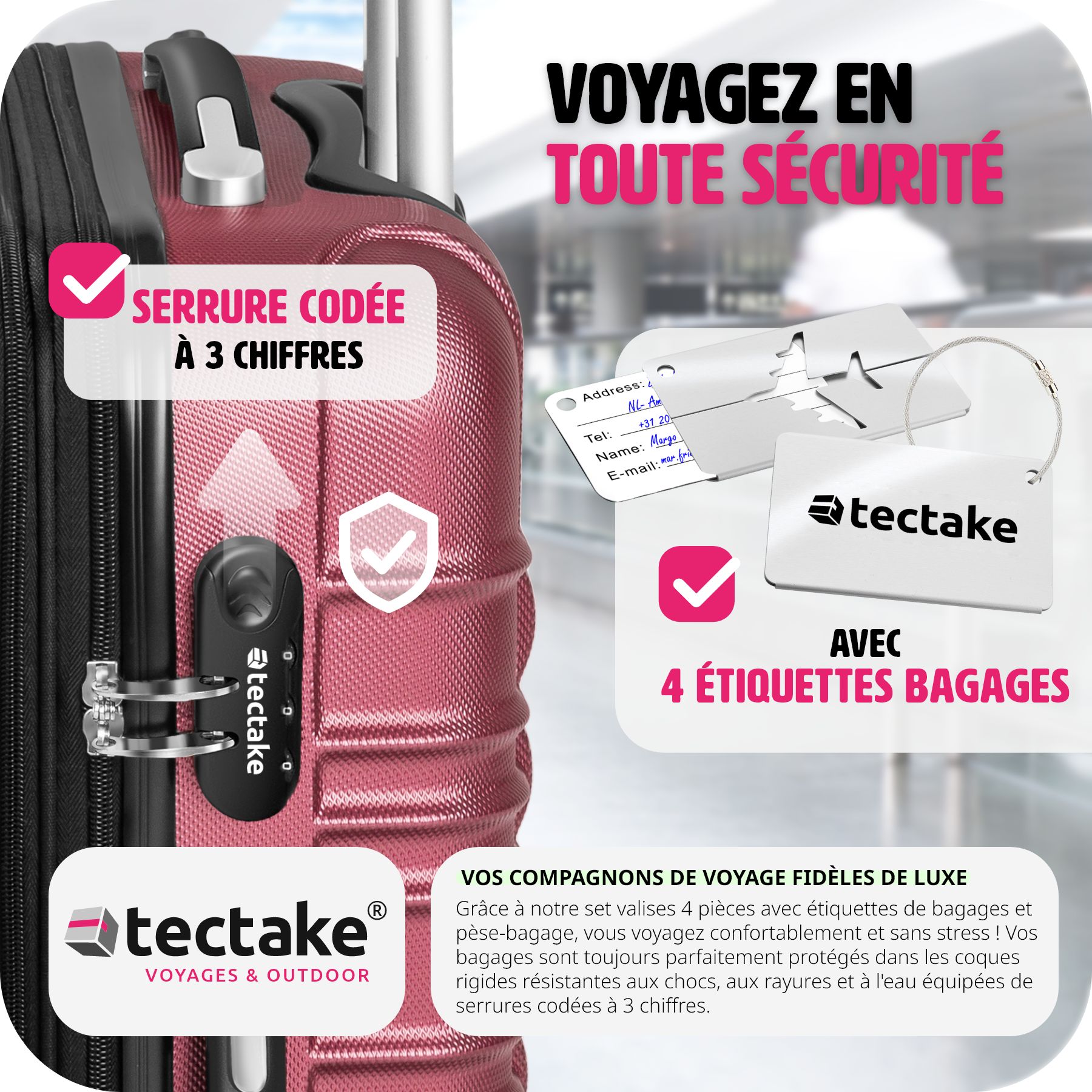 TECTAKE Set de valises rigides 4 pièces en plastique ABS robuste, pèse-bagages et une étiquette de valise