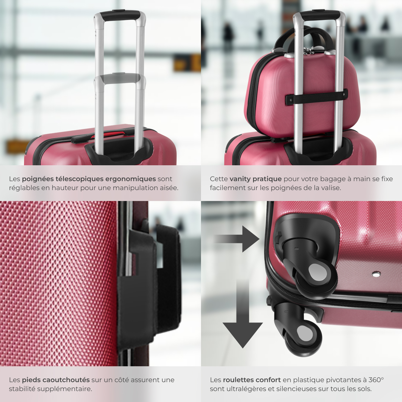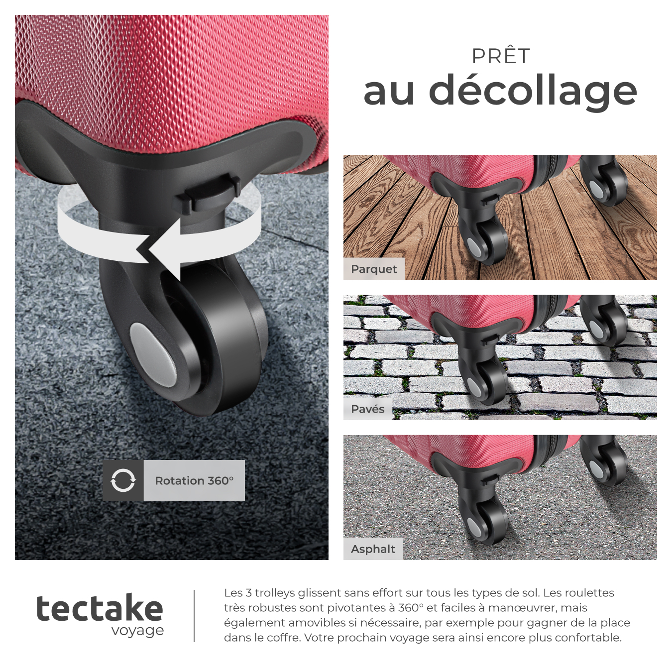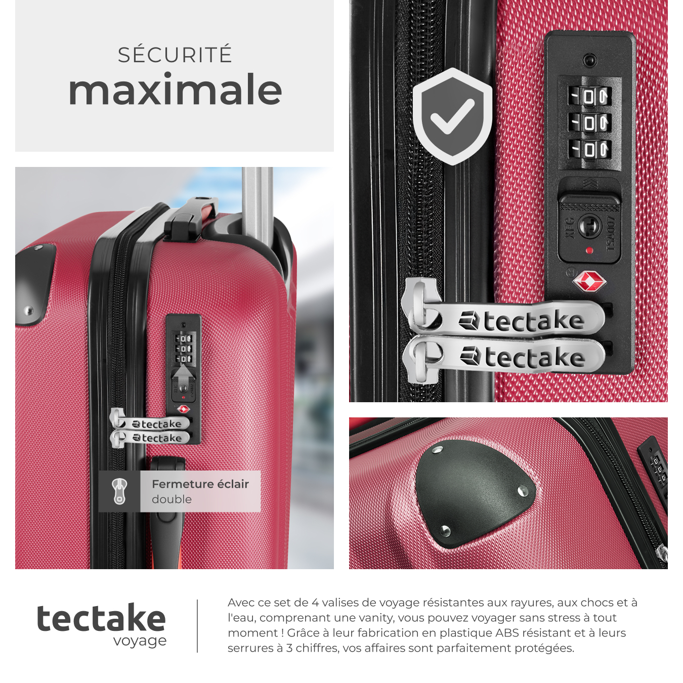 | Libellé | TECTAKE Set de valises trolley rigides 4 pièces, 3 trolleys et une trousse de beauté en plastique ABS robuste rouge bordeaux |