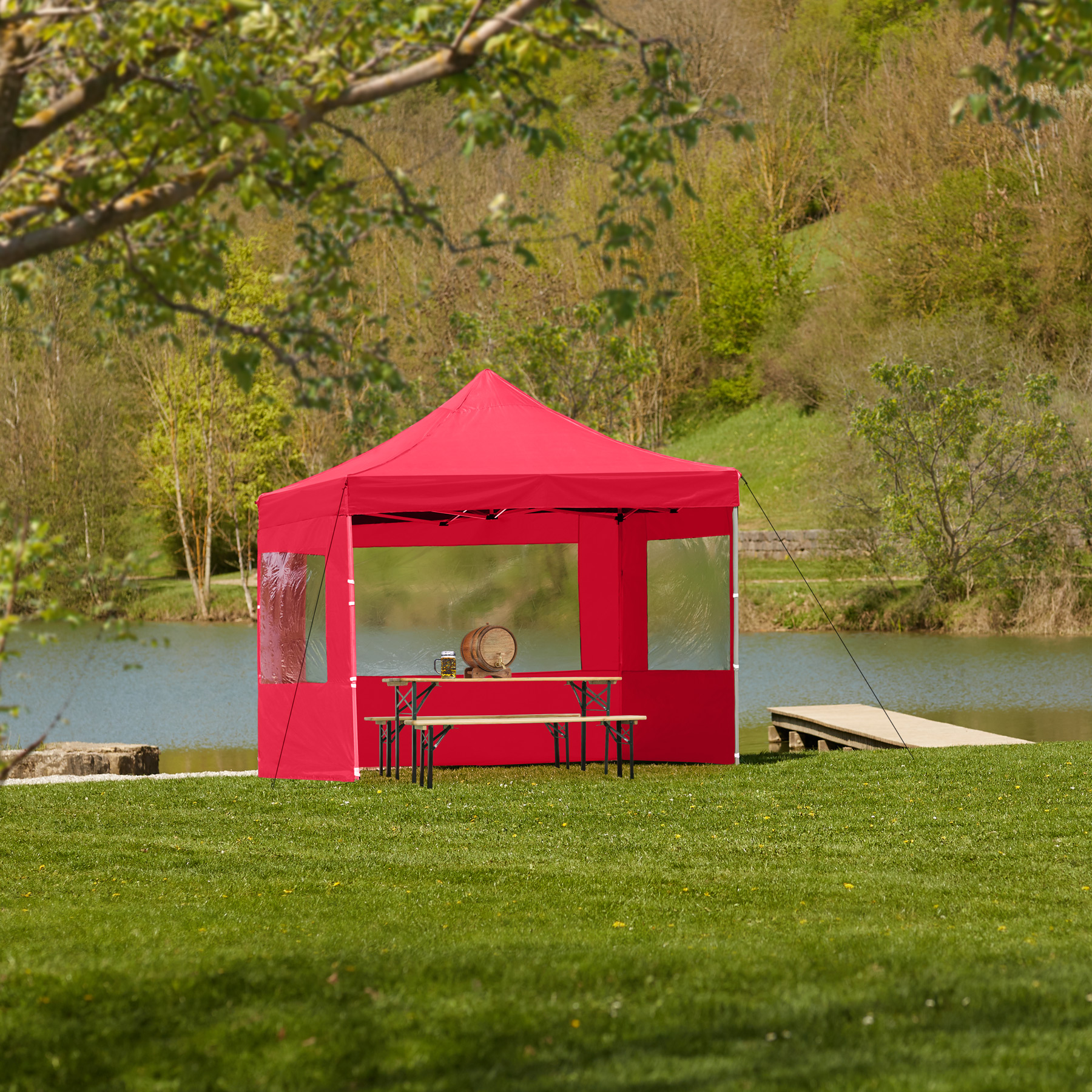 | Libellé | Tectake Tonnelle 3 x 3 m avec 4 rideaux - rouge |