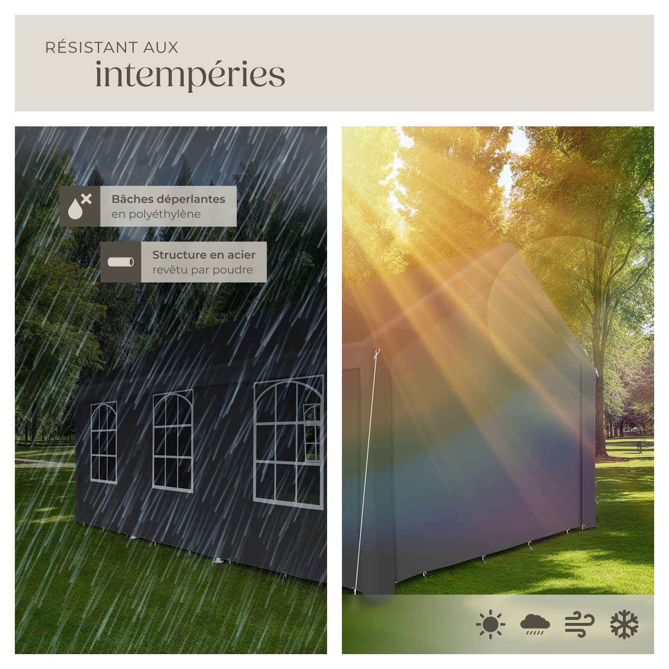 Une réception en vue ? Accueillez tous vos invités sous notre tonnelle 6 x 4 m JASKO tectake ! Idéale pour les mariages, anniversaires ou baptêmes, notre tente de jardin permettra à tout le monde de se retrouver pour partager de bons moments. Elle est dotée de larges fenêtres laissant passer la lumière, tout en vous abritant des gouttes de pluie : votre buffet restera au sec en cas de bruine ! Pour les chaudes journées d'été dans le jardin, le barnum procure également de l'ombre suffisante pour tous. Vous pouvez décider d'installer les deux panneaux aux extrémités de la tonnelle ou pas selon vos envies. La structure est constituée de tubes en acier lâqué époxy. Elle est maintenue au sol par des piquets et des câbles de tension. L'utilisation de ce produit n'est pas recommandée en cas de mauvais temps. Nous vous conseillons de le ranger pour éviter tout dommage potentiel.