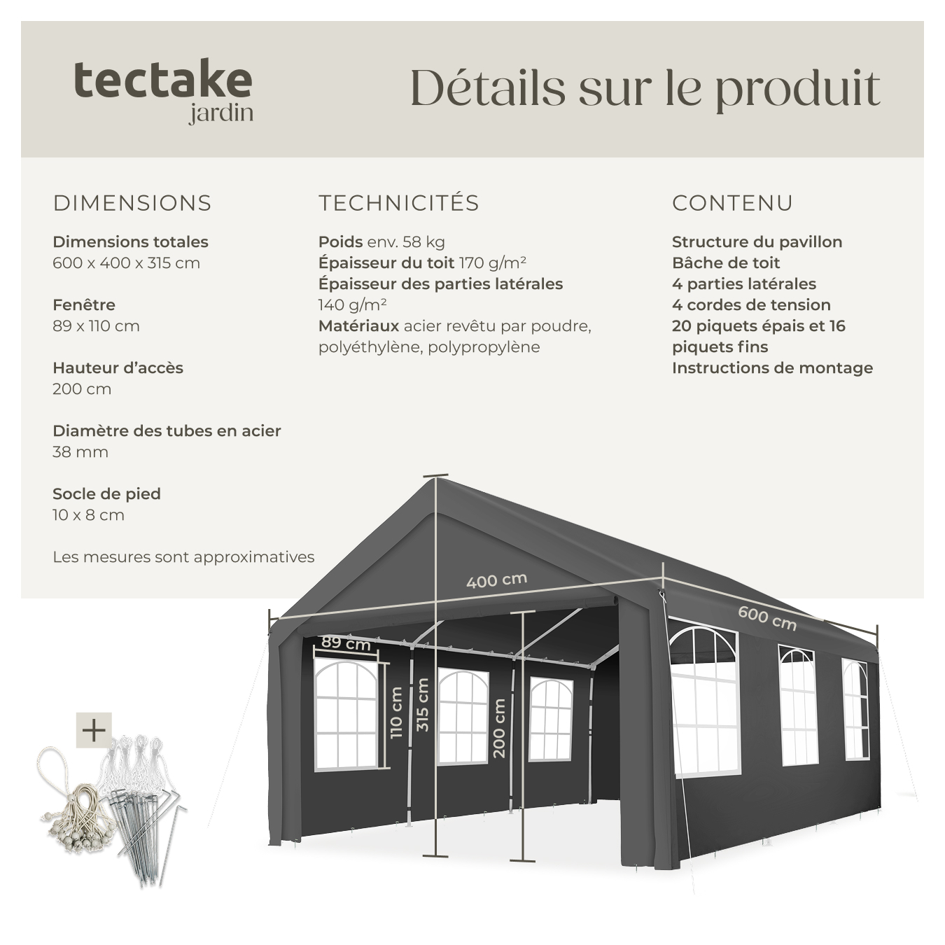 | Libellé | TECTAKE Tonnelle 6 x 4 m gris |