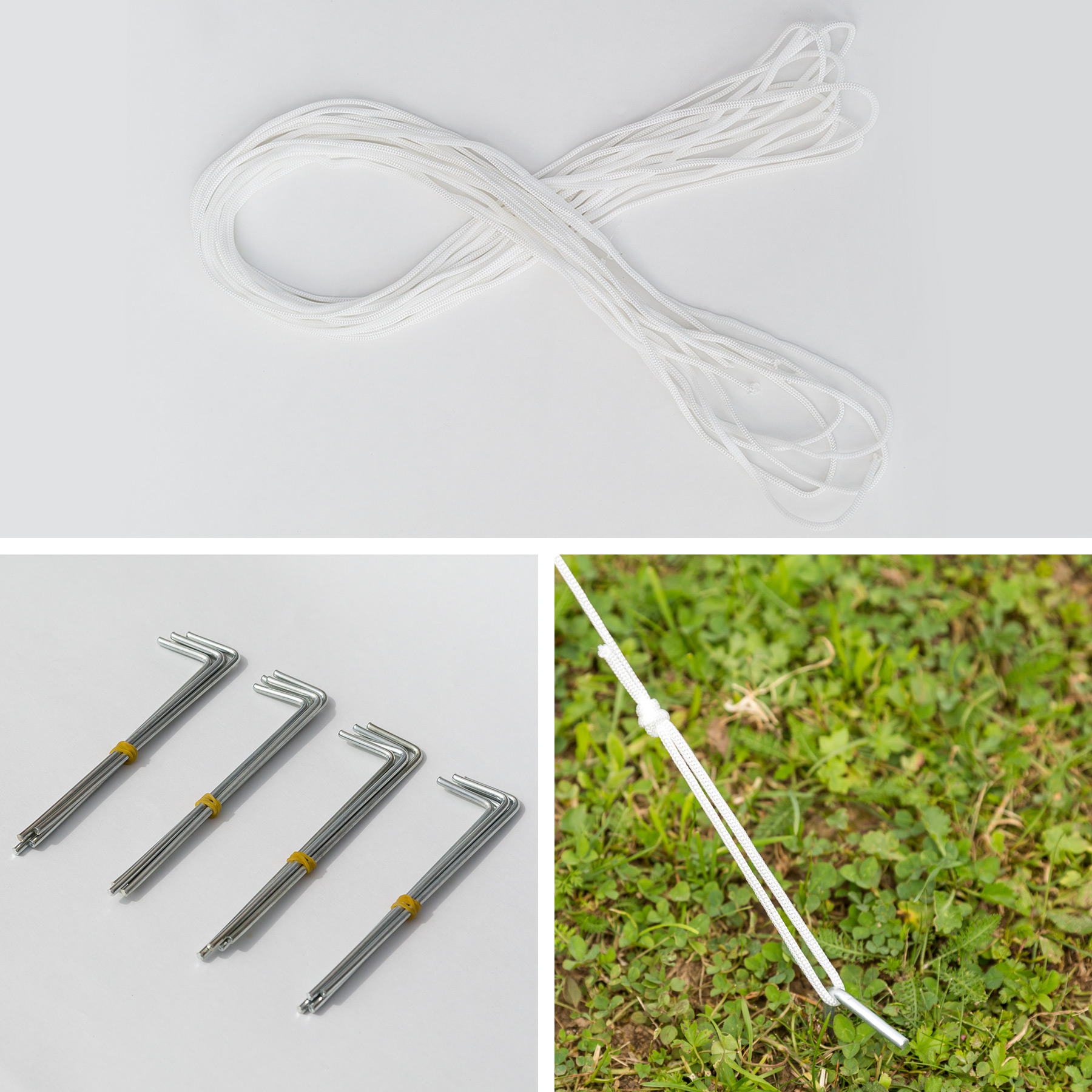 - Cordes de tension et piquets inclus