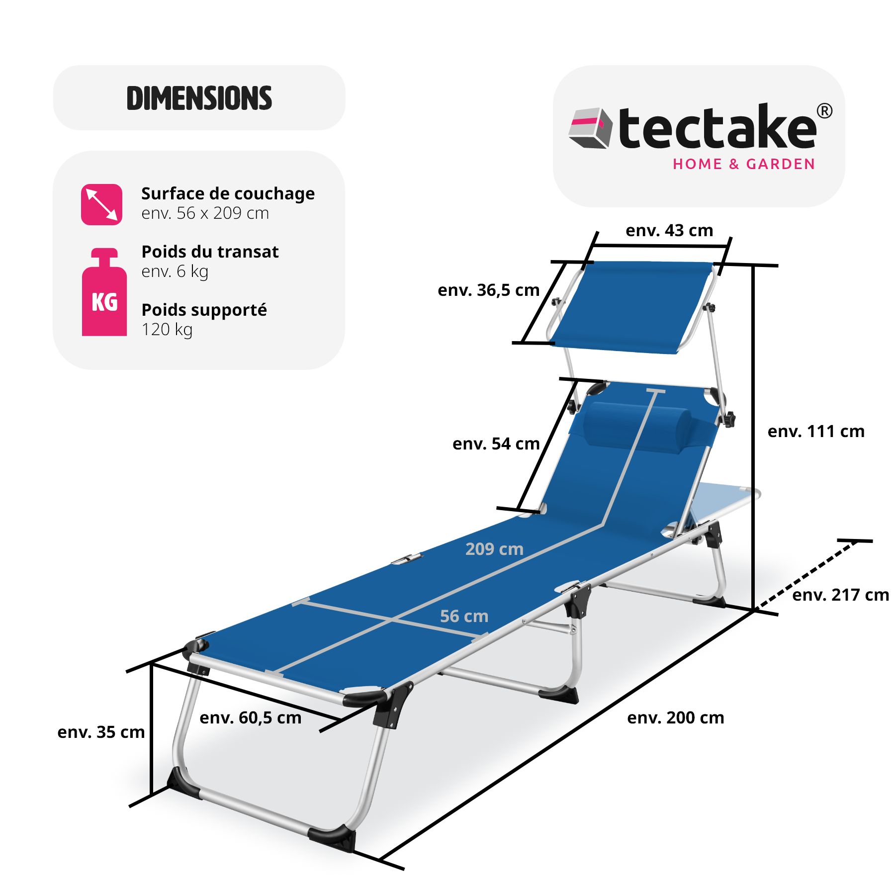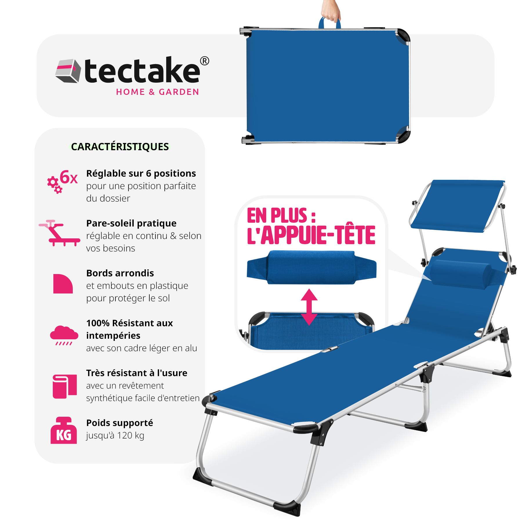 | Libellé | Tectake Transat de jardin Aurélie - bleu |