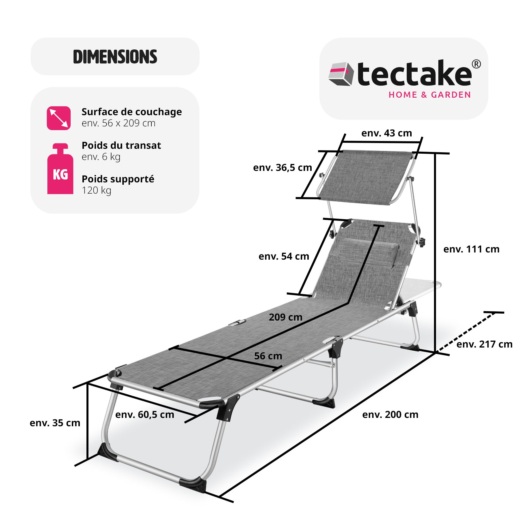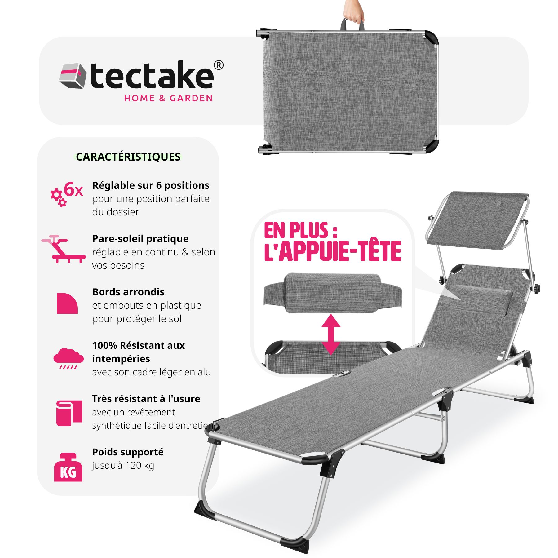 | Libellé | Tectake Transat de jardin Aurélie - gris tacheté |
