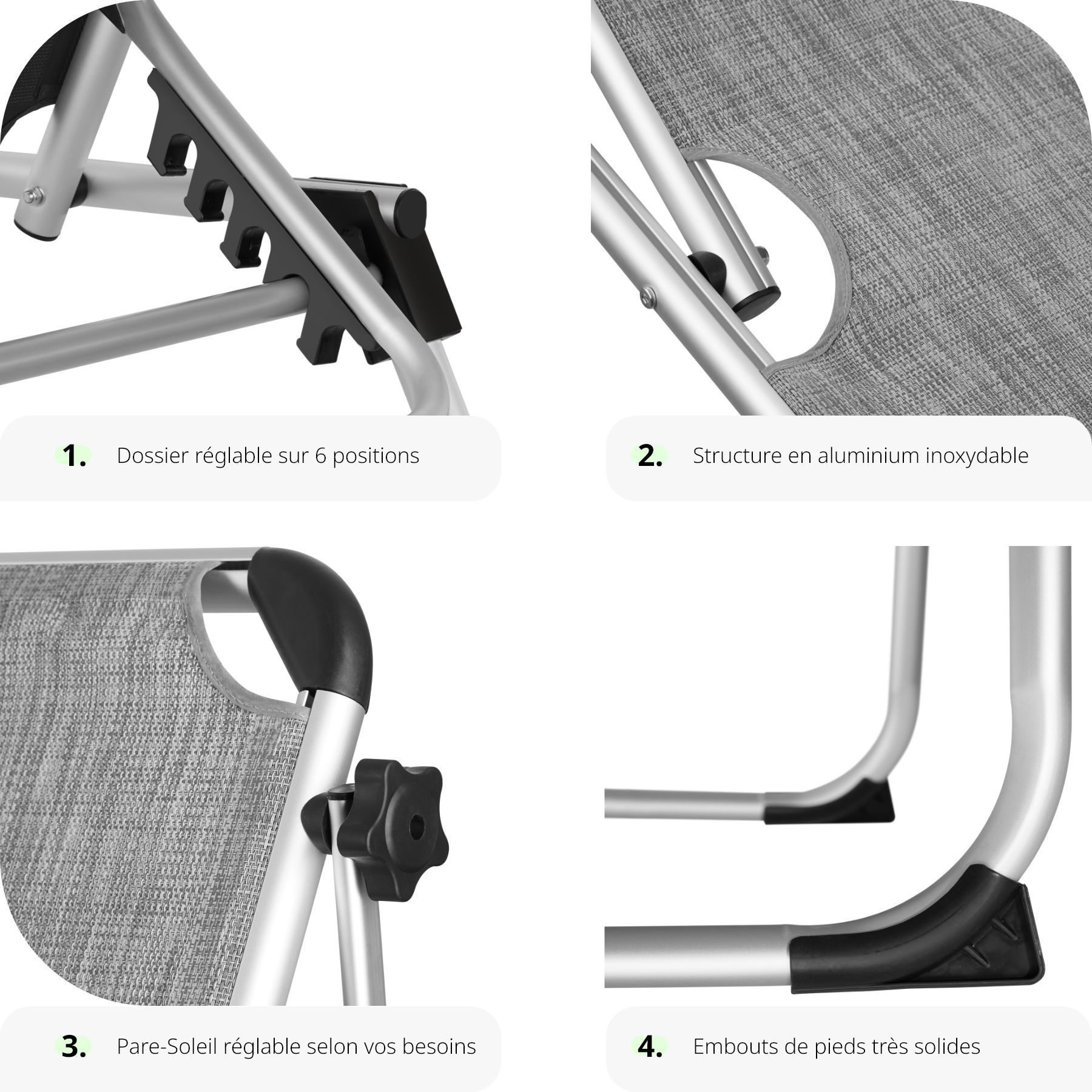 - Dossier réglable en 6 positions