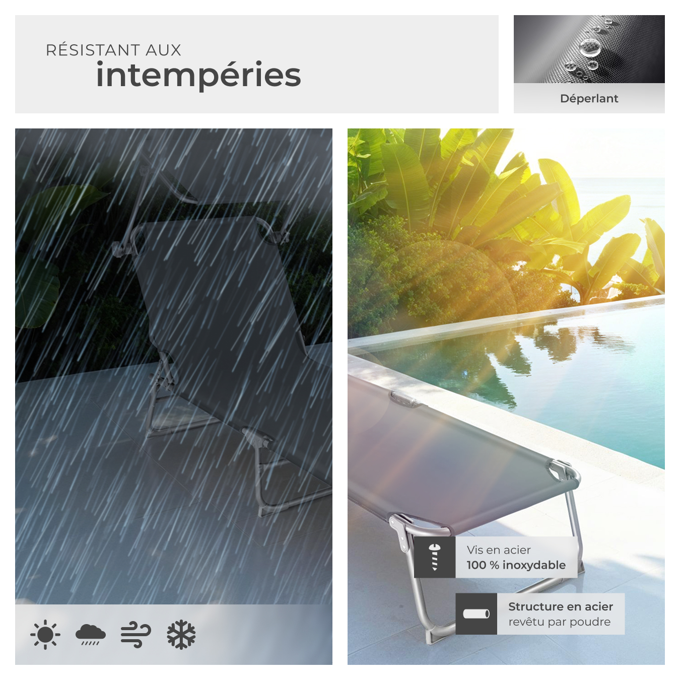 | Libellé | TECTAKE Transat en acier pliable gris |