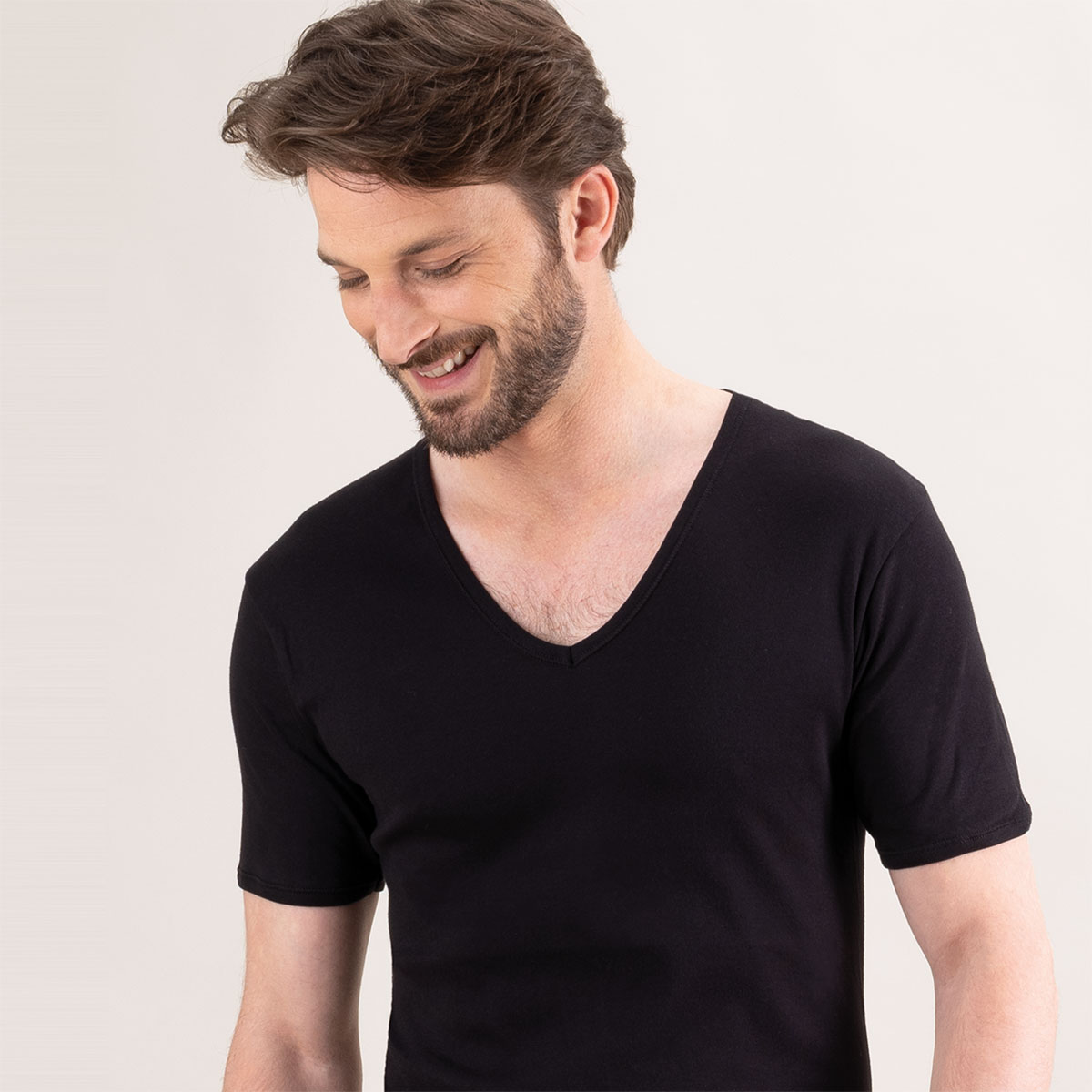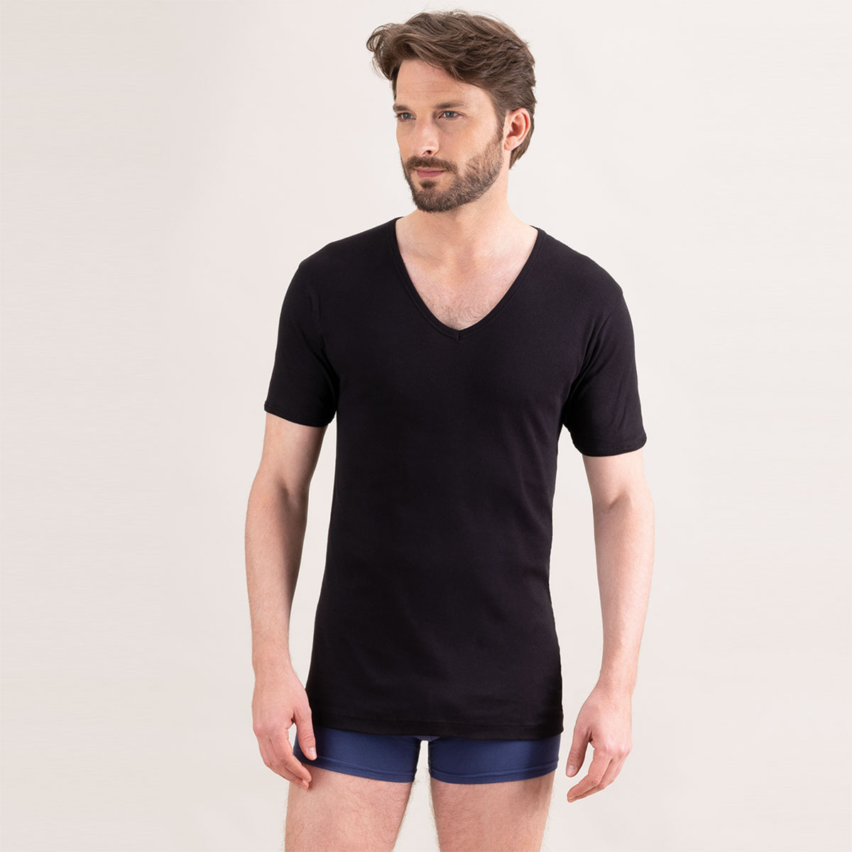 Caracté\;ristiques de ce t-shirt col V \;noir en coton Eminence :