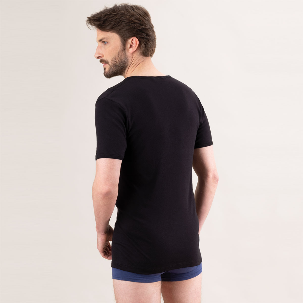 Caracté\;ristiques de ce t-shirt col V \;noir en coton Eminence :