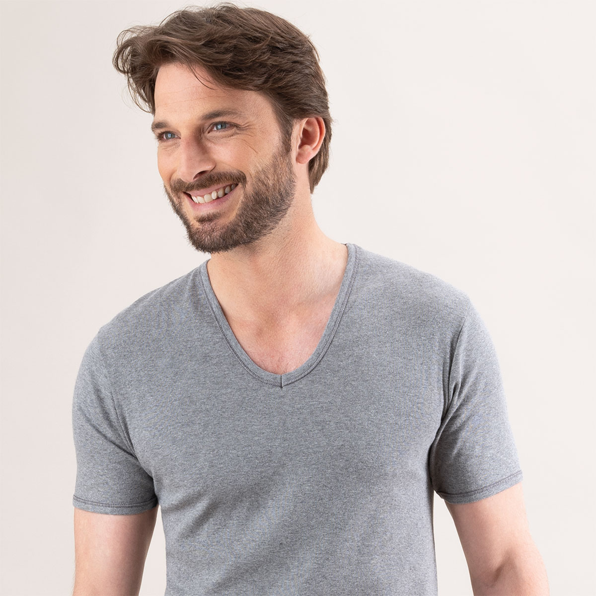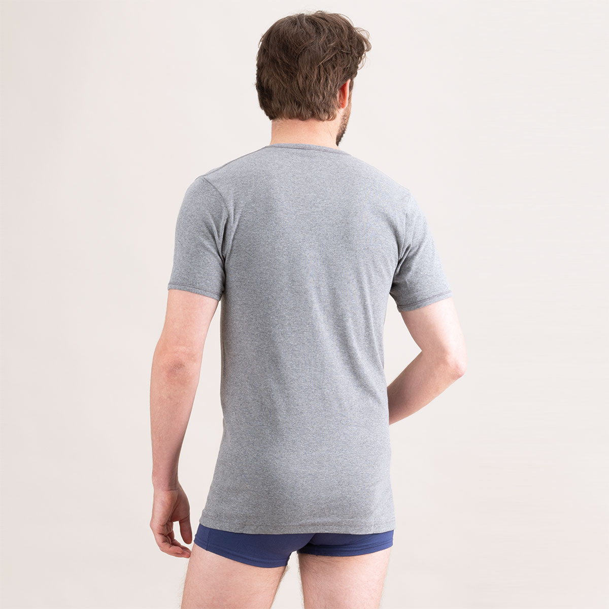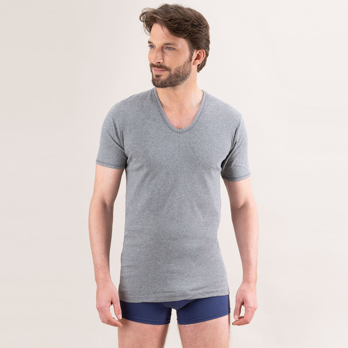 Caracté\;ristiques du Tee-shirt col V gris chiné\; en coton Eminence
