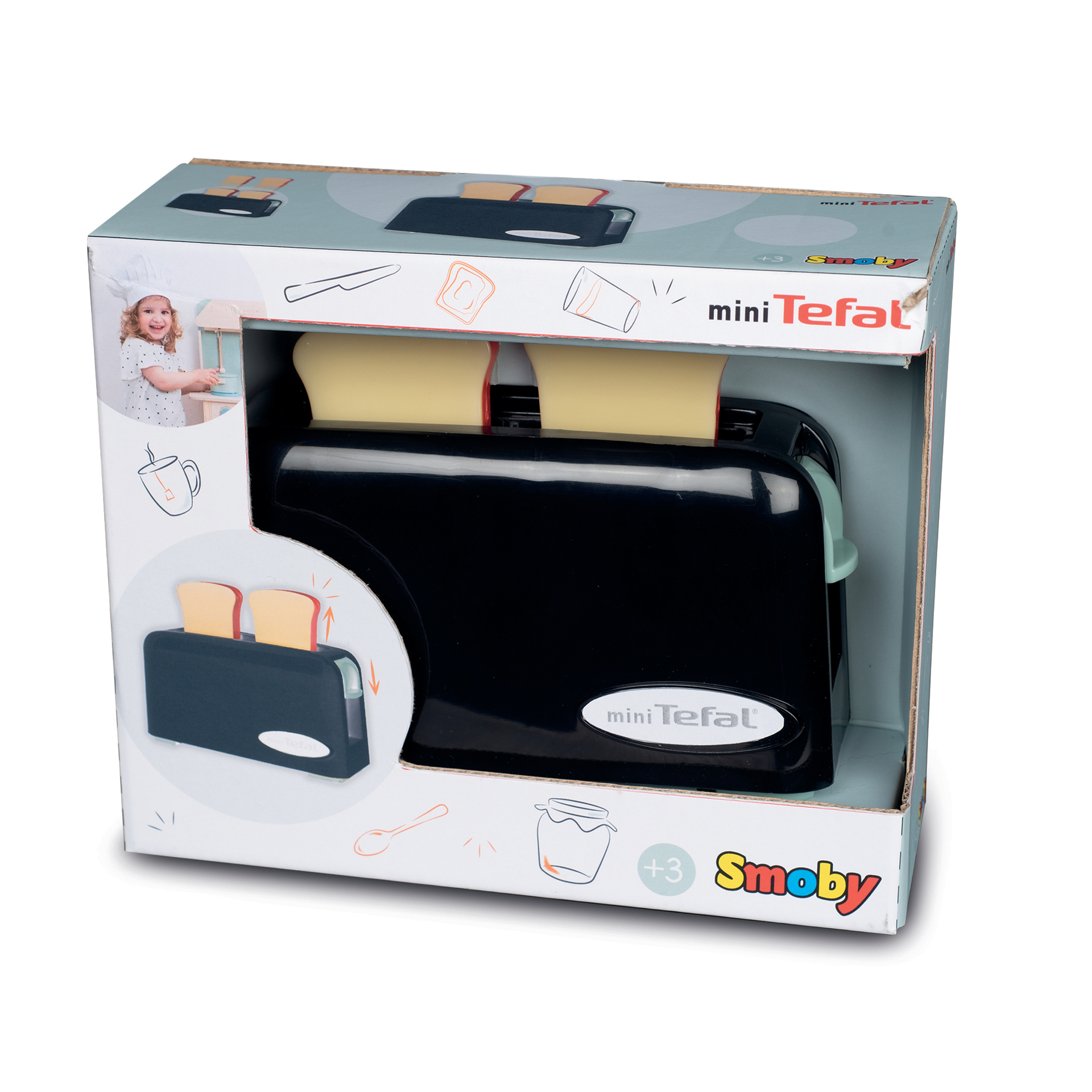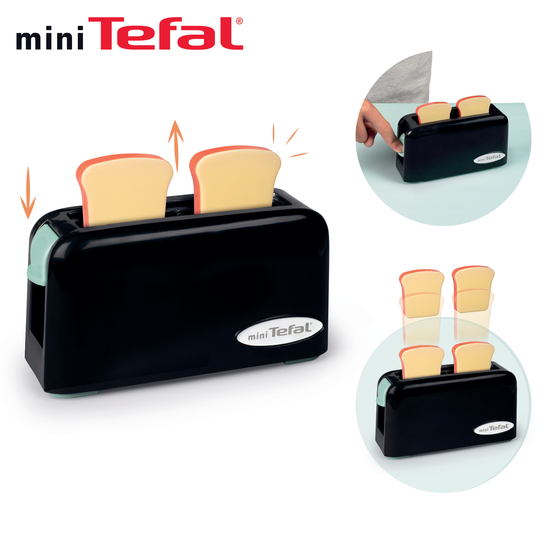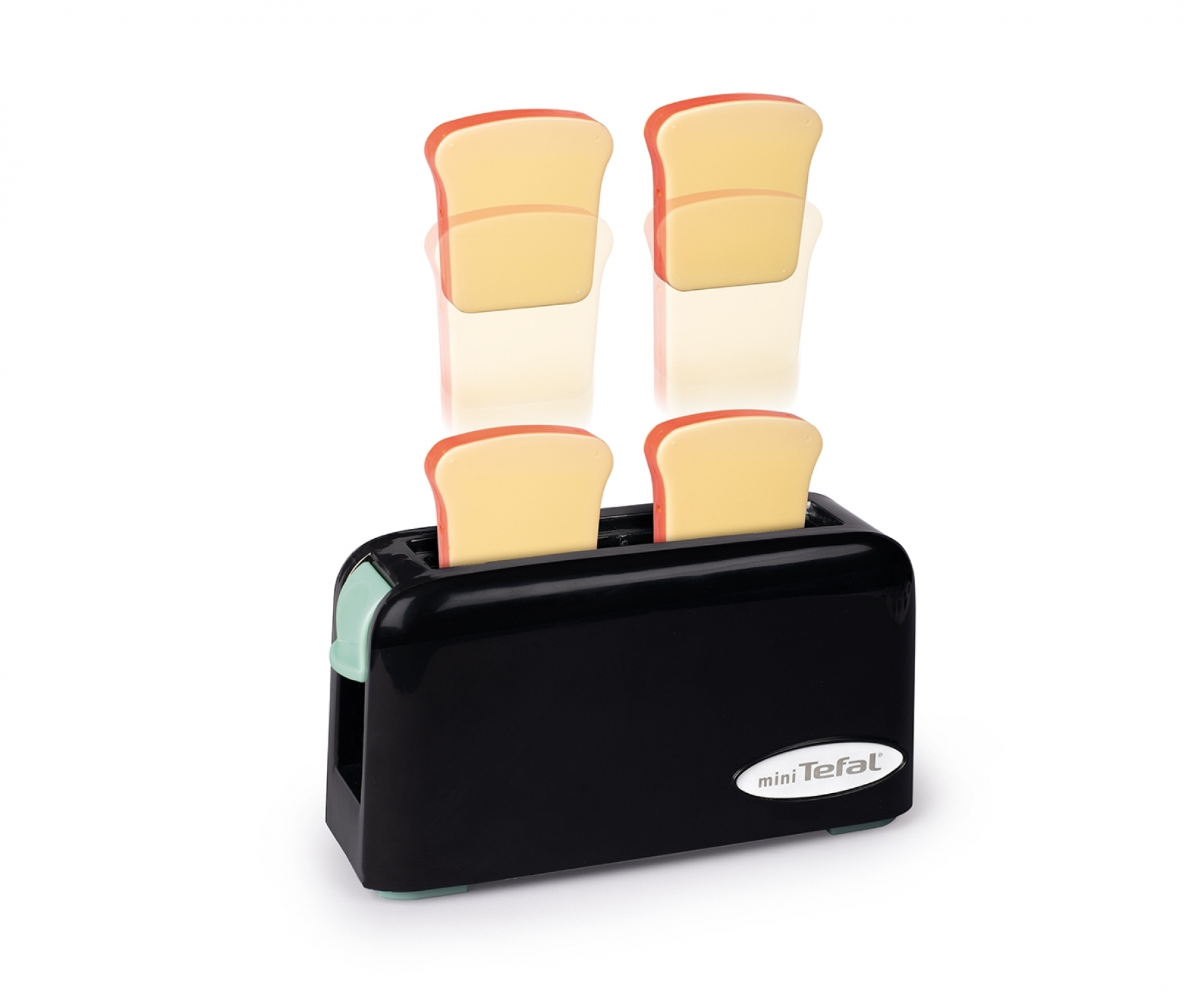 Parfaite réplique du grille-pain "Express" Tefal. Les toast sont éjectés automatiquement après quelques secondes, grâce à une fonction mécanique. Fonctionne sans pile. A partir de 3 ans.