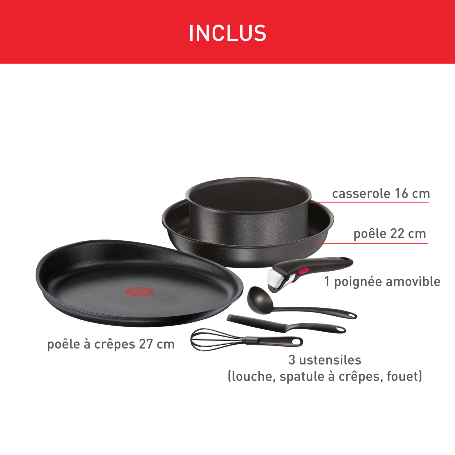 Tefal set 1 poêle + 1 casserole + 1 crêpière + accessoires