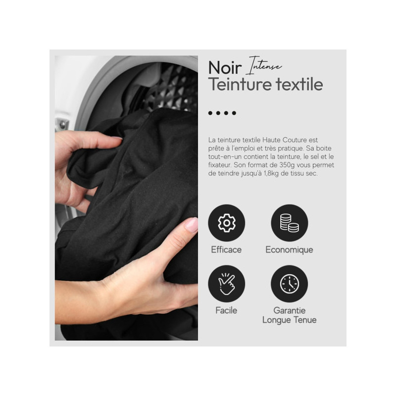 | Libellé | Teinture textile - Tout-en-un - Vêtements - Tissus - Noir - 350g - Haute couture |