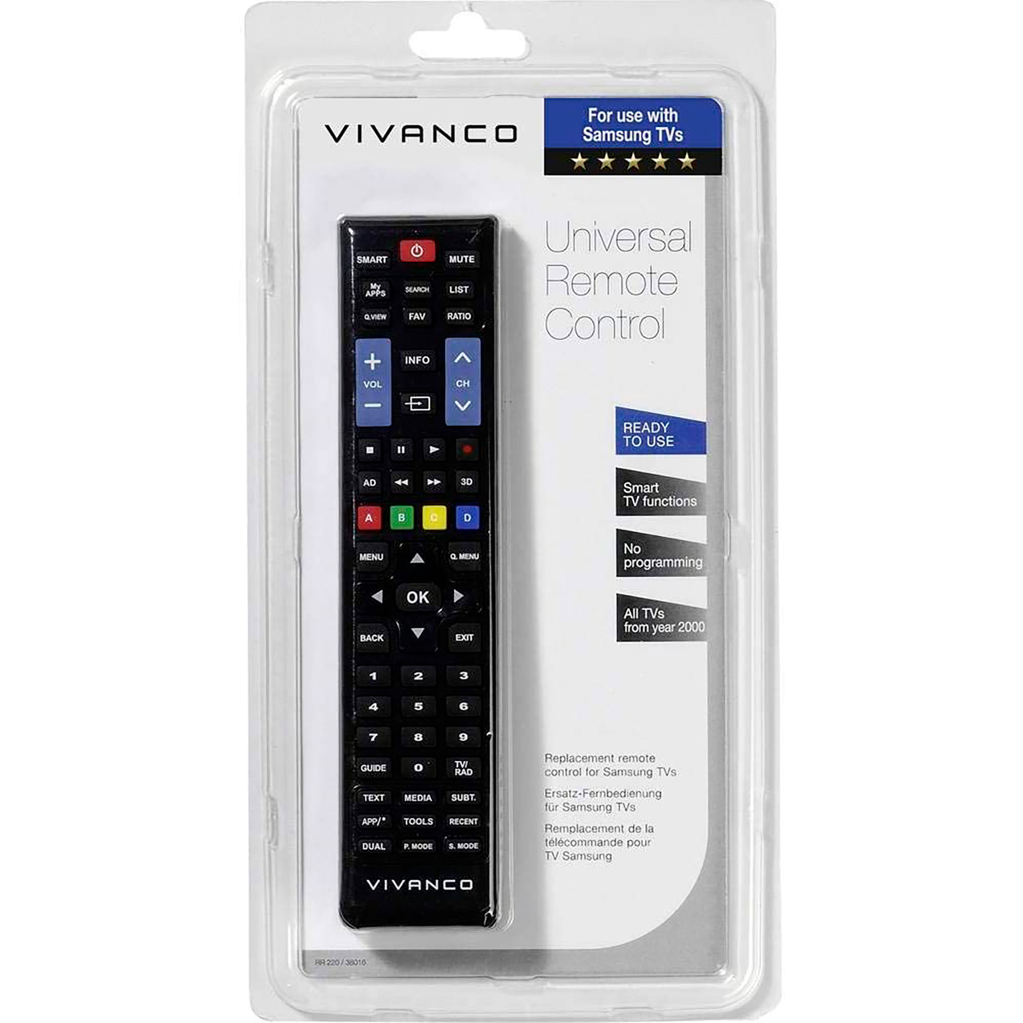 | Libellé | Télécommande Universelle pour Samsung et LG, Compatible avec les Smart TV Noir VivancoRR220IR |