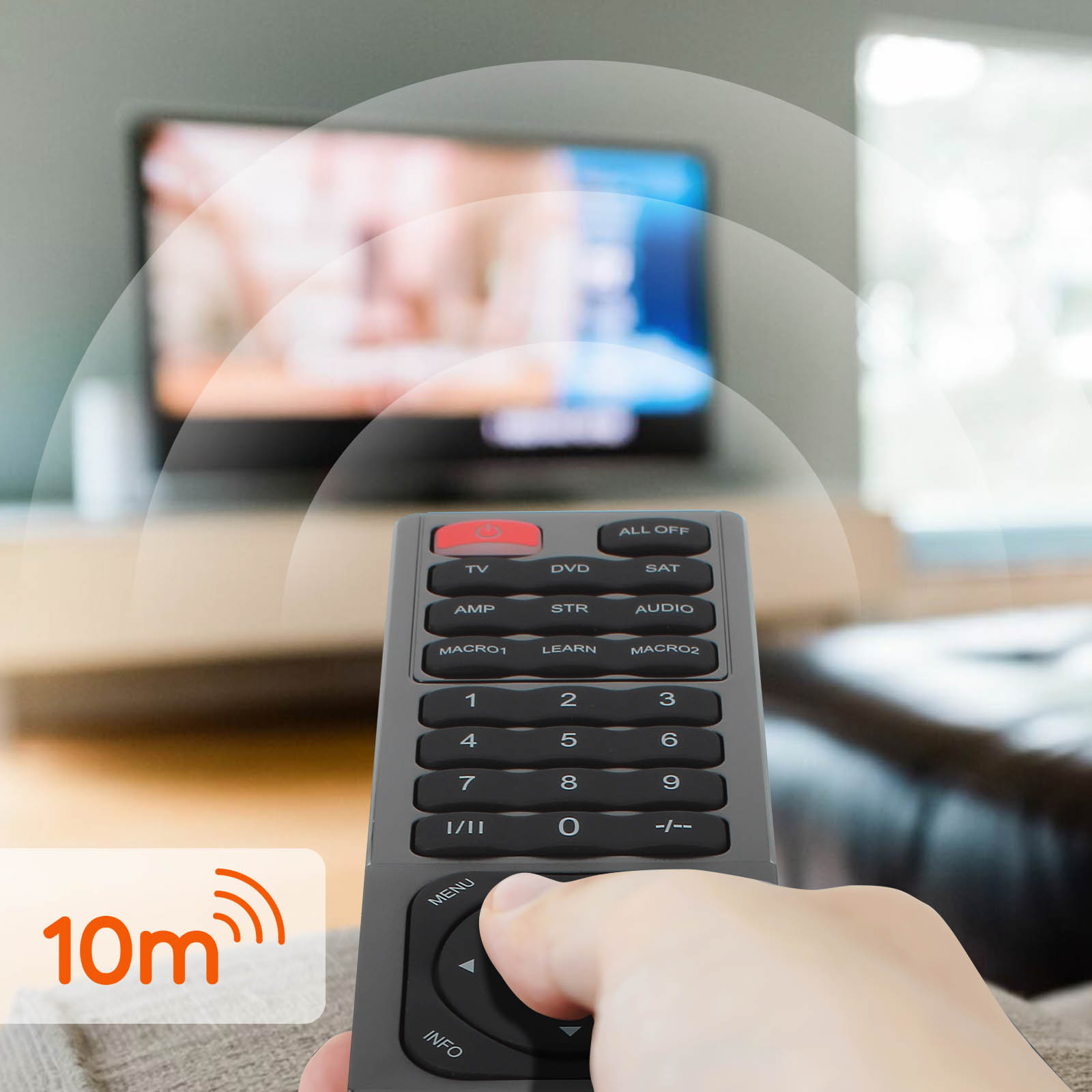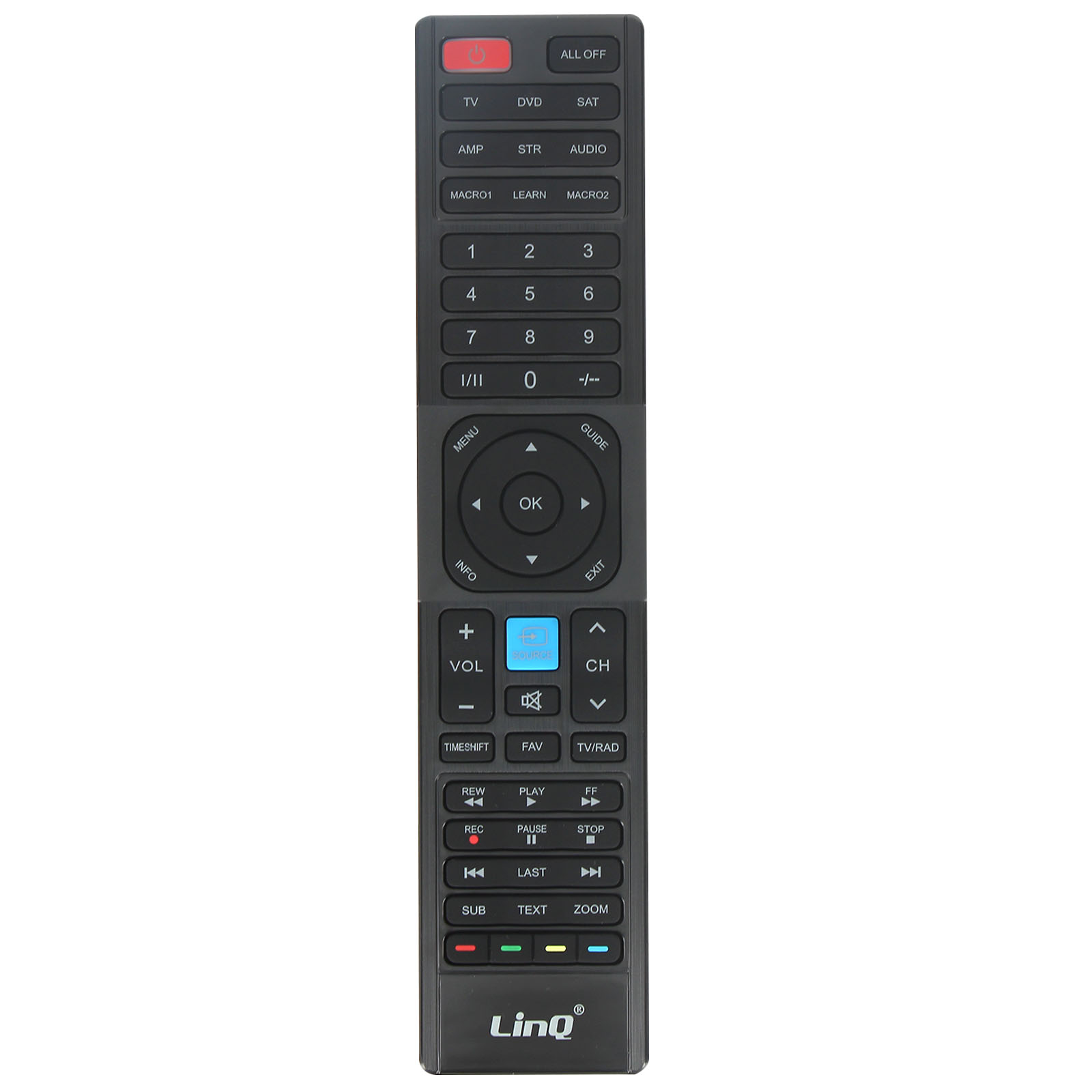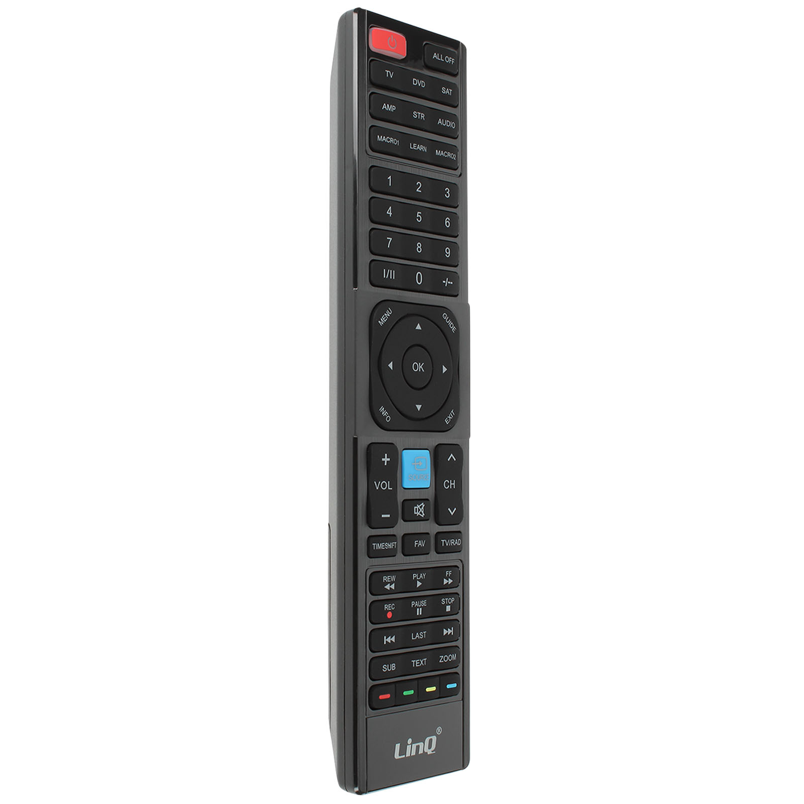 Télécommande universelle programmable de chez LinQ. Multifonction adaptée à votre télévision, lecteur DVD, récepteur satellite, ampli, STR. Distance de portée jusqu'à 10m. Fonctionnalités et boutons utiles intégrés pour une manipulation aisée.