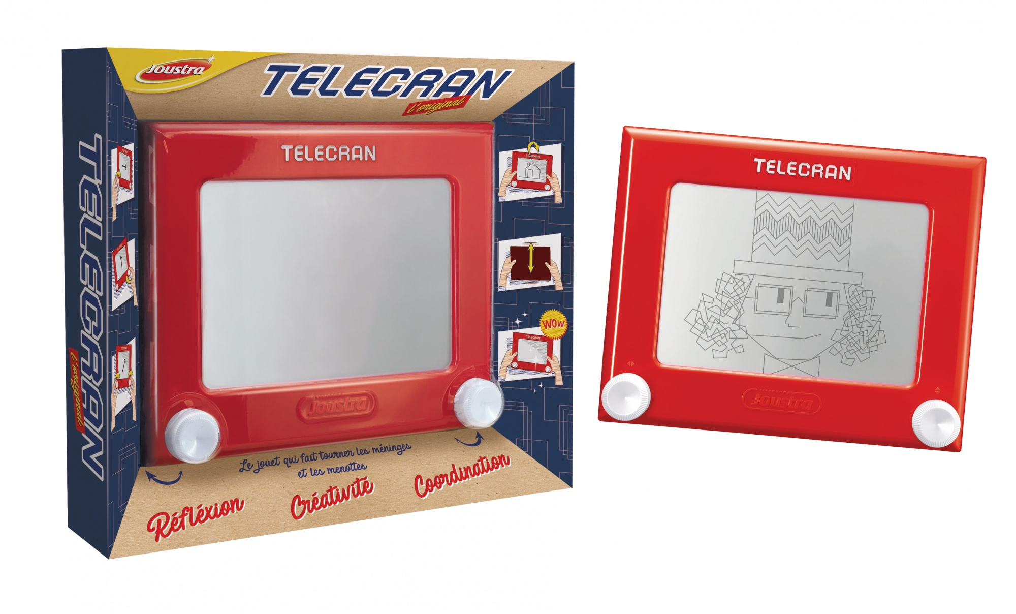 LE TÉLÉCRAN ORIGINAL DES ANNÉES 60 : Le Télécran, c'est le jouet phare des années 60 et 70 qui revient pour stimuler la créativité des enfants ! Tout à la fois jeu de coordination, de création et de réflexion, le Télécran, avec sa boite originale des années 60, va à nouveau faire tourner les méninges… et les mains des enfants d'aujourd'hui ! ENFIN UN ÉCRAN STIMULANT ! Contrairement aux multiples écrans connectés qui nous envahissent, et qui poussent à la passivité, le télécran de 19cm est non connecté. Mieux, il stimule les enfants, qui vont adorer voir leurs manipulations se transformer en véritables dessins sur l'écran ! Le Télécran est recommandé pour les enfants à partir de 5 ans. UN MODE D'EMPLOI SIMPLE, POUR DES POSSIBILITÉS INFINIES : Le principe est simple, les deux molettes situées de part et d'autre de l'écran permettent de dessiner des lignes. Une molette permet de tracer des lignes à la verticale (vers le haut et vers le bas), l'autre à l'horizontale, vers la droite et vers la gauche. En cas de mauvaise manipulation, ou pour créer un nouveau dessin, il suffit de secouer le télécran, qui s'efface tout seul. De quoi créer à l'infini ! DÉVELOPPER SA CRÉATIVITÉ EN S'AMUSANT : Jouet à la fois simple et offrant une multitude de possibilités, le Télécran est idéal pour aider les enfants à développer leur coordination main gauche/main droite. Ils stimulent également leur réflexion en cherchant le meilleur moyen pour effectuer leur dessin. La possibilité de repartir à zéro à tout moment permet à l'enfant d'effectuer autant de tentatives qu'il le souhaite, jusqu'à ce qu'il soit satisfait du résultat.