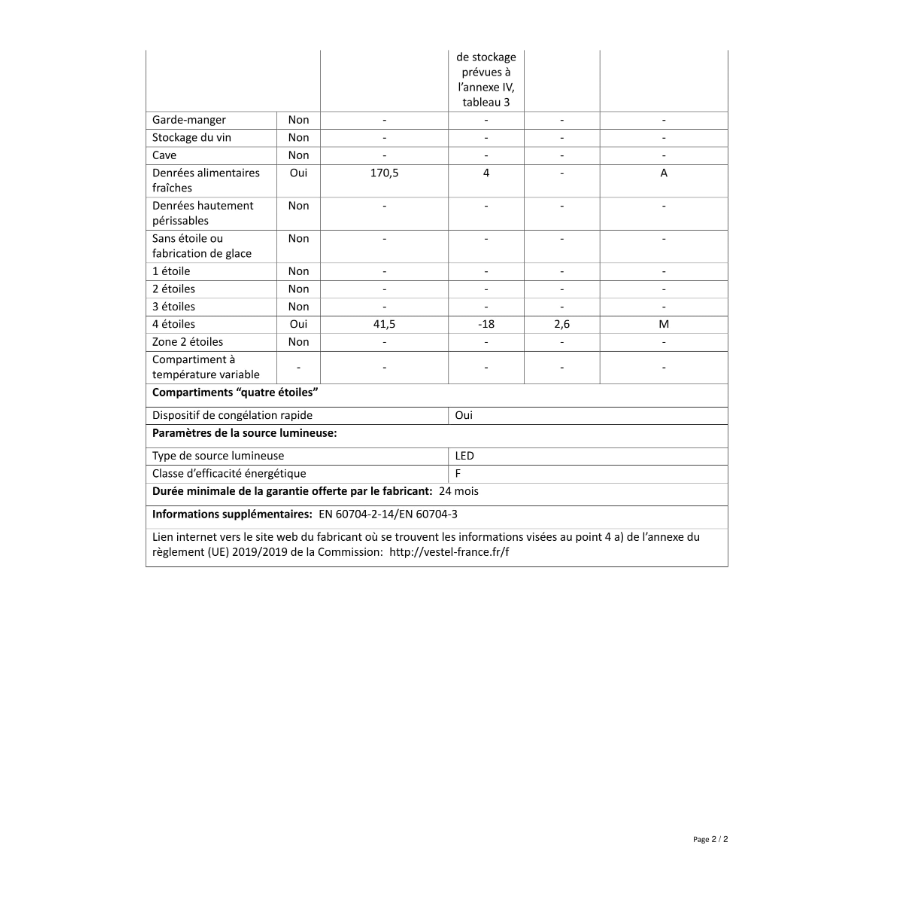 Capacité du compartiment de stockage des denrées réfrigérées (L) 170,5