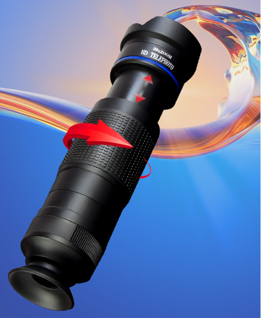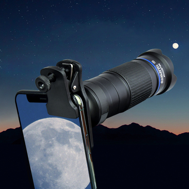 Laissez votre téléphone prendre des photos nettes en gros plan jusqu'à une distance de 8 000 mètres ! L'objectif mobile a un grossissement de 36X et peut être facilement ajusté en tournant la bague de mise au point.