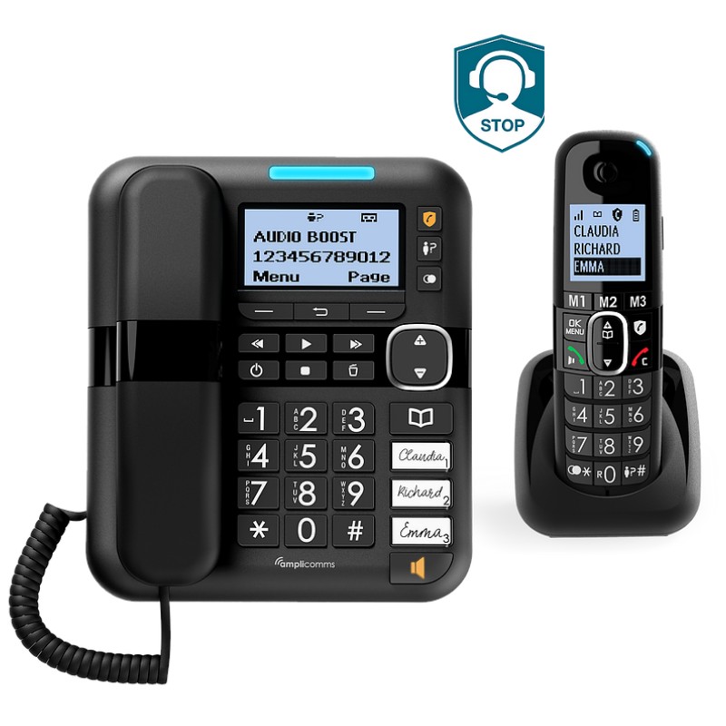 Le nouveau pack téléphones Amplicomms BigTel 1580 Combo est très simple d'utilisation et fortement conseillé aux personnes malentendantes et malvoyantes.