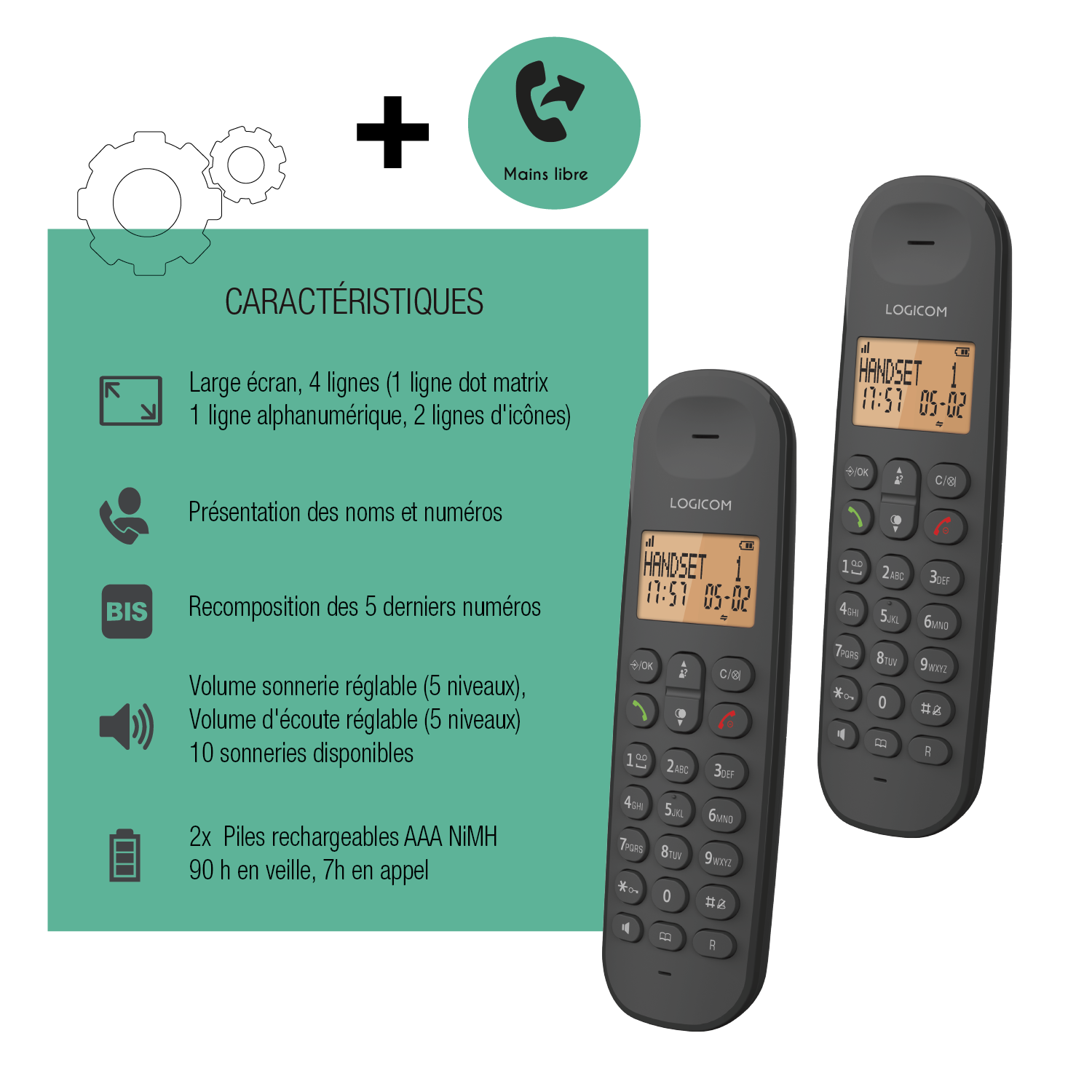 | Libellé | Téléphone Fixe sans fil Duo Logicom Iloa 250 Noir |