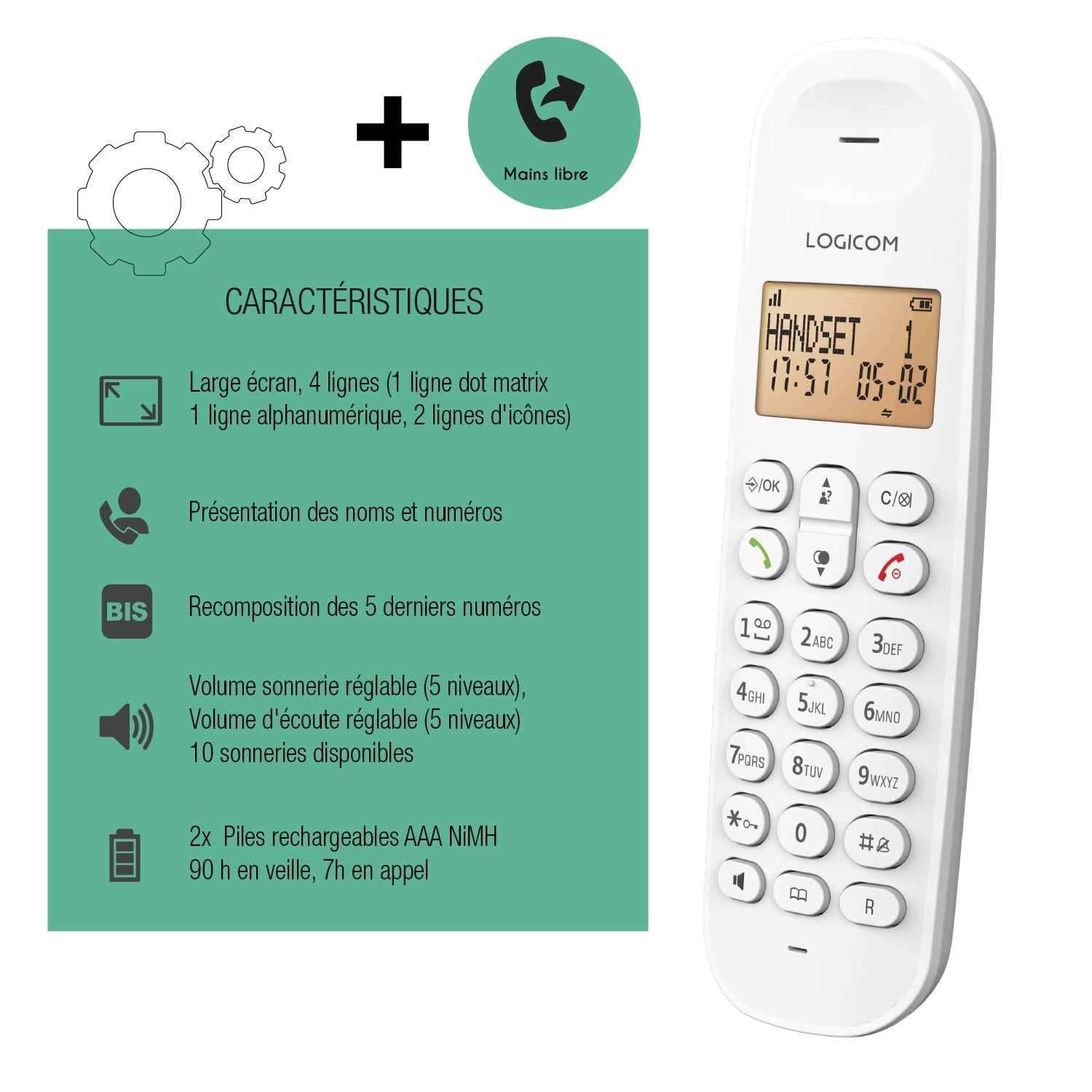 | Libellé | Téléphone Fixe sans fil Logicom Iloa 150 Blanc |