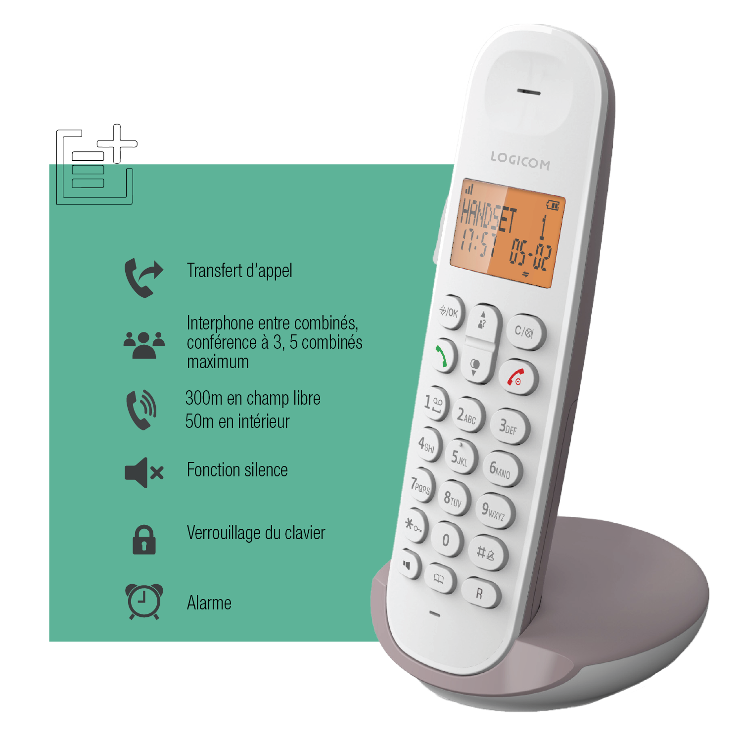 | Libellé | Téléphone Fixe sans fil Logicom Iloa 150 Taupe |