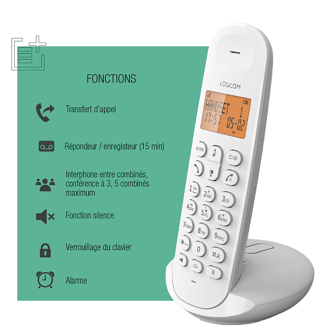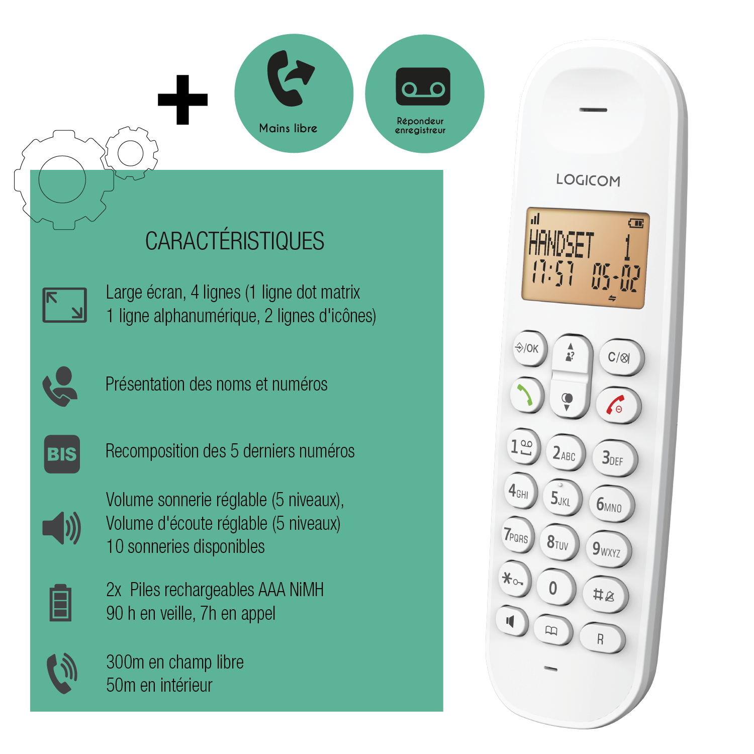 | Libellé | Téléphone Fixe sans fil Logicom Iloa 155T Blanc |