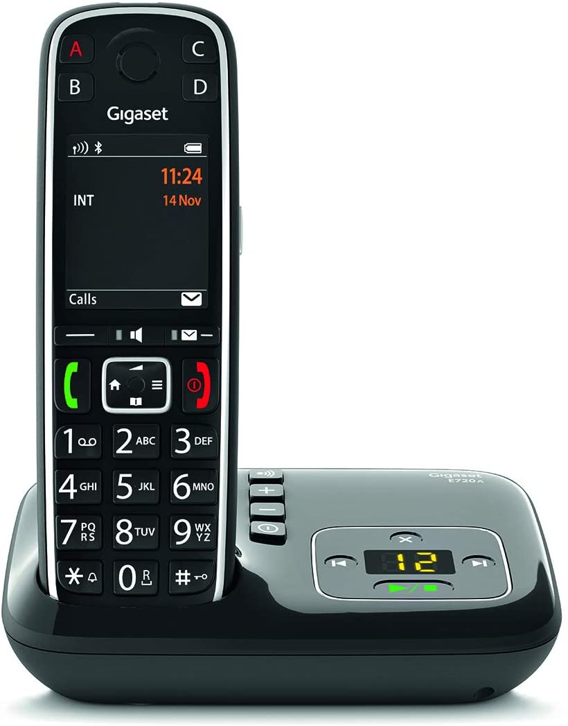 Bien plus qu'une simple liste noire : avec le téléphone sans fil Gigaset E720, vous pouvez choisir de mettre en place un éclairage vert de l'écran pour signaler les appels de contacts du répertoire. Vous pourrez reconnaitre ces appels en un coup d'œil. Tout ce que vous avez à faire est d'enregistrer les contacts dans le répertoire et activer la fonction "Appelant validé" dans le menu principal.Vous pouvez également choisir une protection contre les appels indésirables plus élevée en activant la fonction "Amis proches" avec laquelle seuls les appels provenant des contacts du répertoire seront acceptés.Parmi les caractéristiques spéciales de la gamme E720, vous retrouverez la fonction "supervision des appels" : lors d’un appel entrant, tout appelant répertorié dans la liste blanche (15 numéros) pourra, après authentification via un code PIN, écouter ce qui se passe dans la pièce au travers du combiné.Optez pour plus de liberté quand vous recevez un appel : ce téléphone vous permet de répondre directement aux appels via vos aides auditives. En effet, grâce au Bluetooth 4.2, le téléphone sans fil Gigaset E720 se connecte facilement aux aides auditives modernes. Cela rend vos appels reçus et émis encore plus agréables : vous pouvez garder les mains libres et apprécier le son parfaitement limpide du téléphone.Le téléphone Gigaset E720 est compatible avec les aides auditives Phonak et Unitron, et potentiellement avec les autres marques dont les dispositifs sont compatibles avec le Bluetooth 4.2 HSP et HFP.Dans certaines situations, le son n'est pas assez fort. Vous avez déjà la possibilité de choisir entre 5 niveaux de volume sonore. Mais si ce n'est pas suffisant, vous pouvez simplement doubler le volume en appuyant sur la touche Boost sur la droite du combiné - cela ne prend en compte le changement de volume que pour l'appel en cours afin d'éviter de surprendre la personne qui utilisera le téléphone après vous. Comme c'est le cas pour de nombreux téléphones Gigaset, le E720 propose deux profils acoustiques qui permettent d'améliorer les fréquences trop hautes ou trop basses en fonction de vos propres capacités auditives.Le téléphone Gigaset E720 dédié aux seniors propose un grand écran couleur avec contraste accru contenant une fonction zoom pour un affichage avec des grands caractères. Par exemple, un contact sélectionné dans le répertoire sera automatiquement affiché en grand et surligné en orange. Si le nom du contact est trop long pour l'écran, il défilera vers la gauche pour que vous puissiez le voir entièrement. Les numéros entrés lorsque vous composez sont également surlignés en orange et affichés en format extra large. Et si la pièce dans laquelle vous vous trouvez manque de lumière ? La luminosité de l'écran permet une parfaite lisibilité.Vous pouvez facilement relier les numéros importants aux 4 touches d'appel direct et les appeler directement en appuyant simplement sur la touche correspondant au numéro que vous souhaitez appeler. Une fonction SOS pour les cas d'urgence peut également être reliée à la touche A. Vous pouvez ainsi appeler à l'aide en appuyant simplement sur la touche A, qui peut être reliée à 4 numéros maximum pour appeler les contacts importants comme des proches ou des voisins.